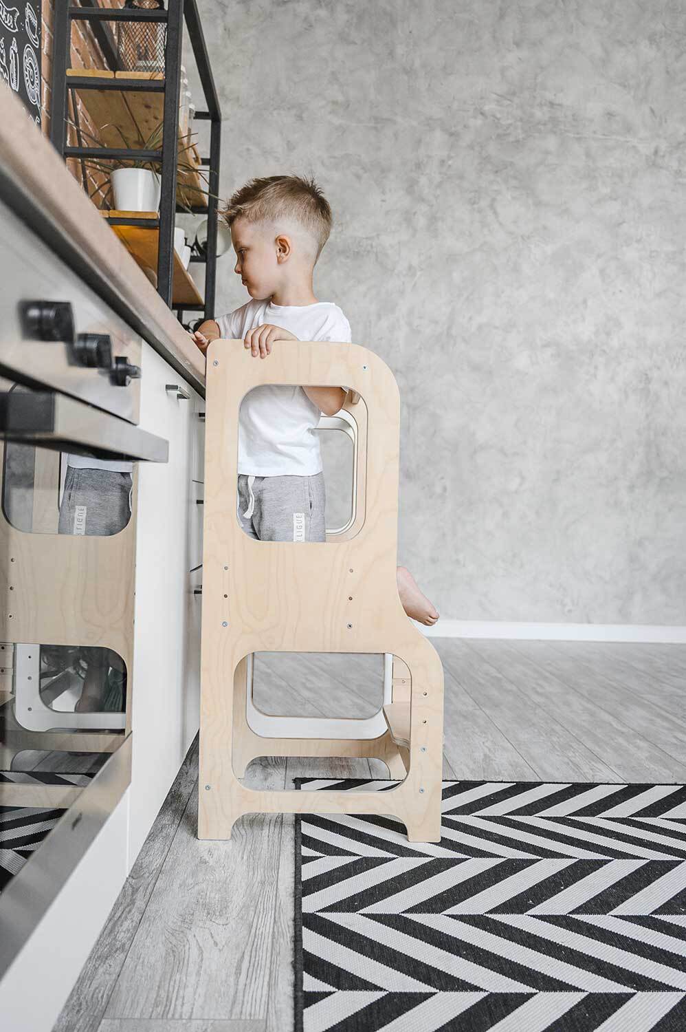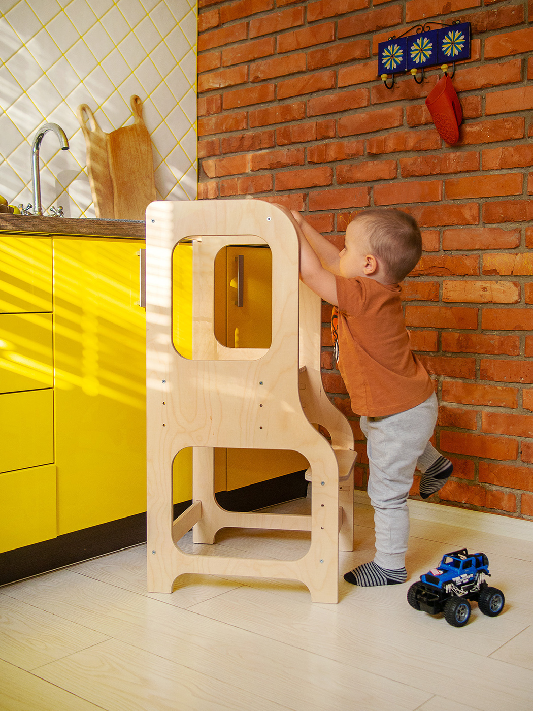 Башня маленького помощника Монтессори, цвет натуральное дерево