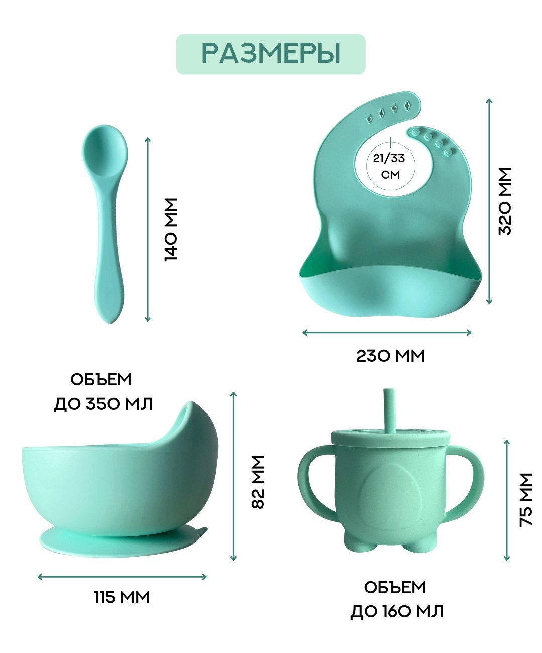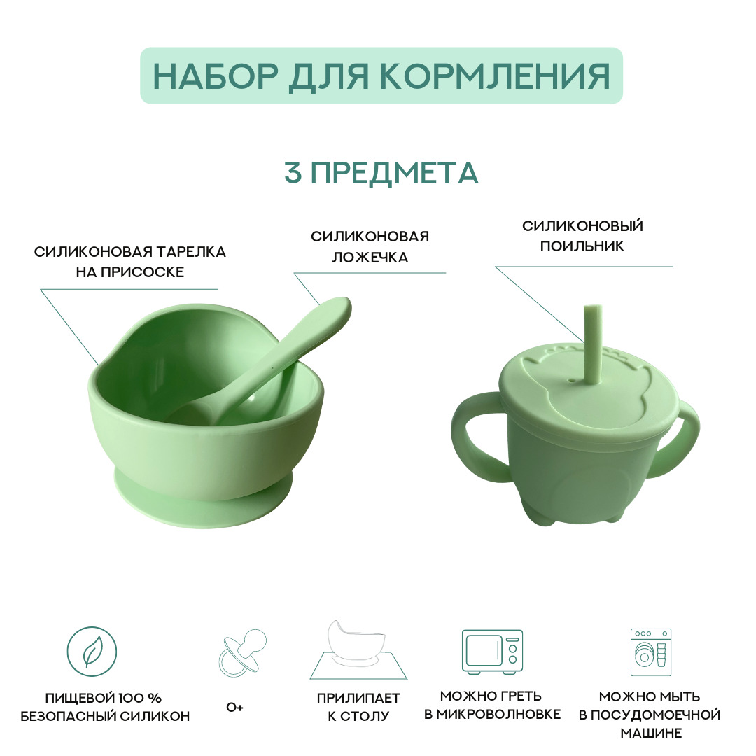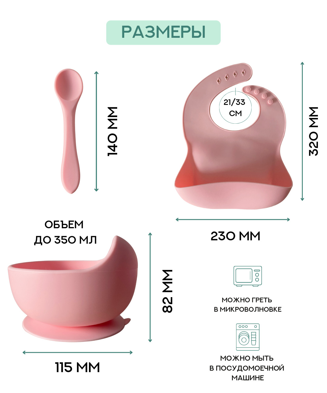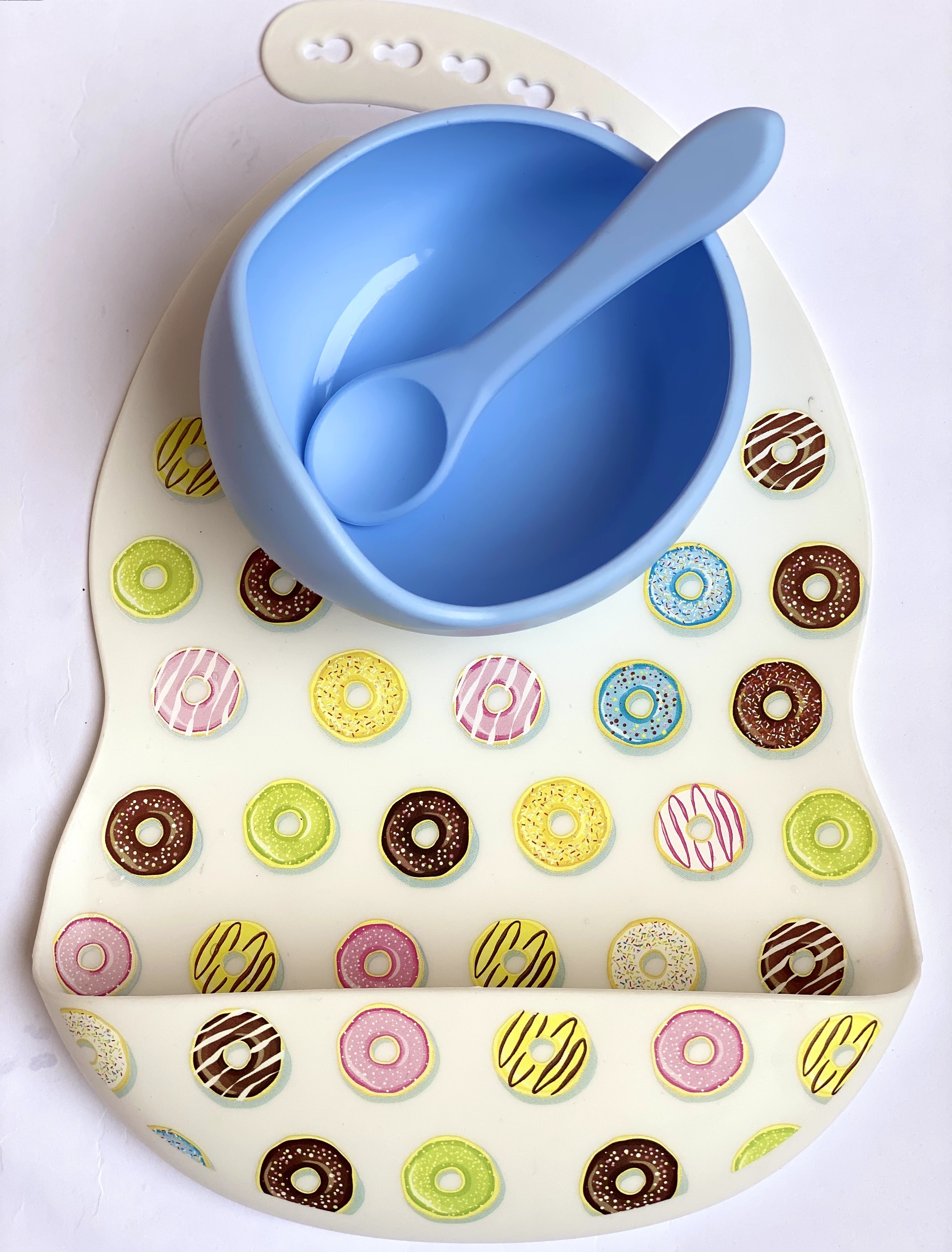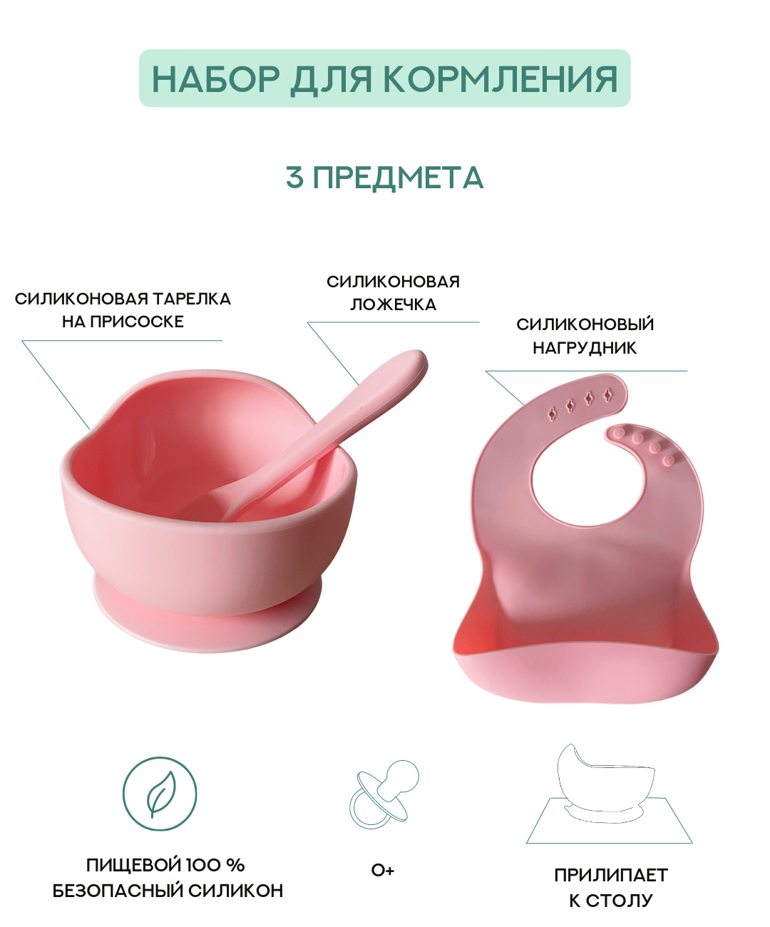 Тарелка с ложкой силиконовая на присоске и нагрудник/Набор для кормления/Набор для первого прикорма