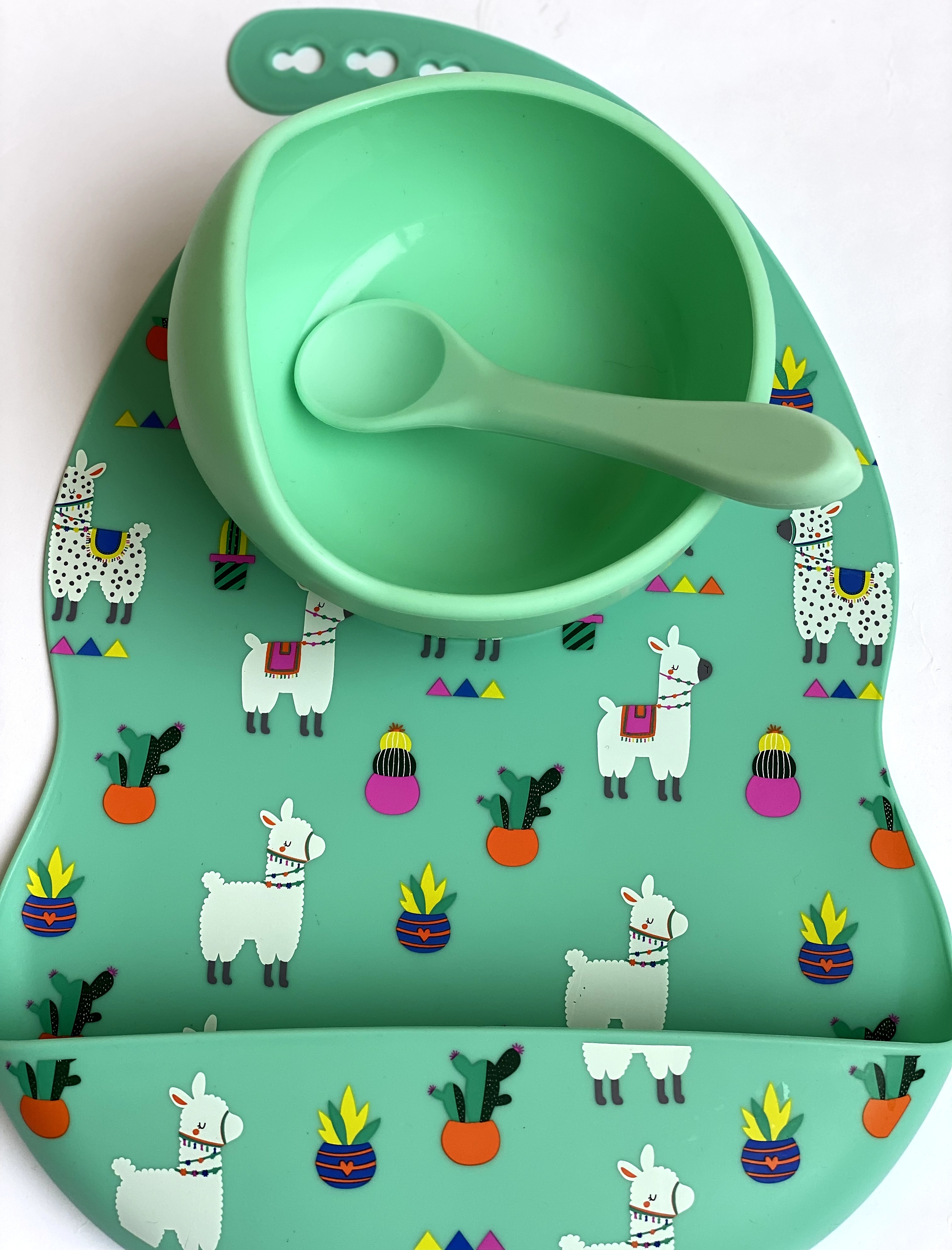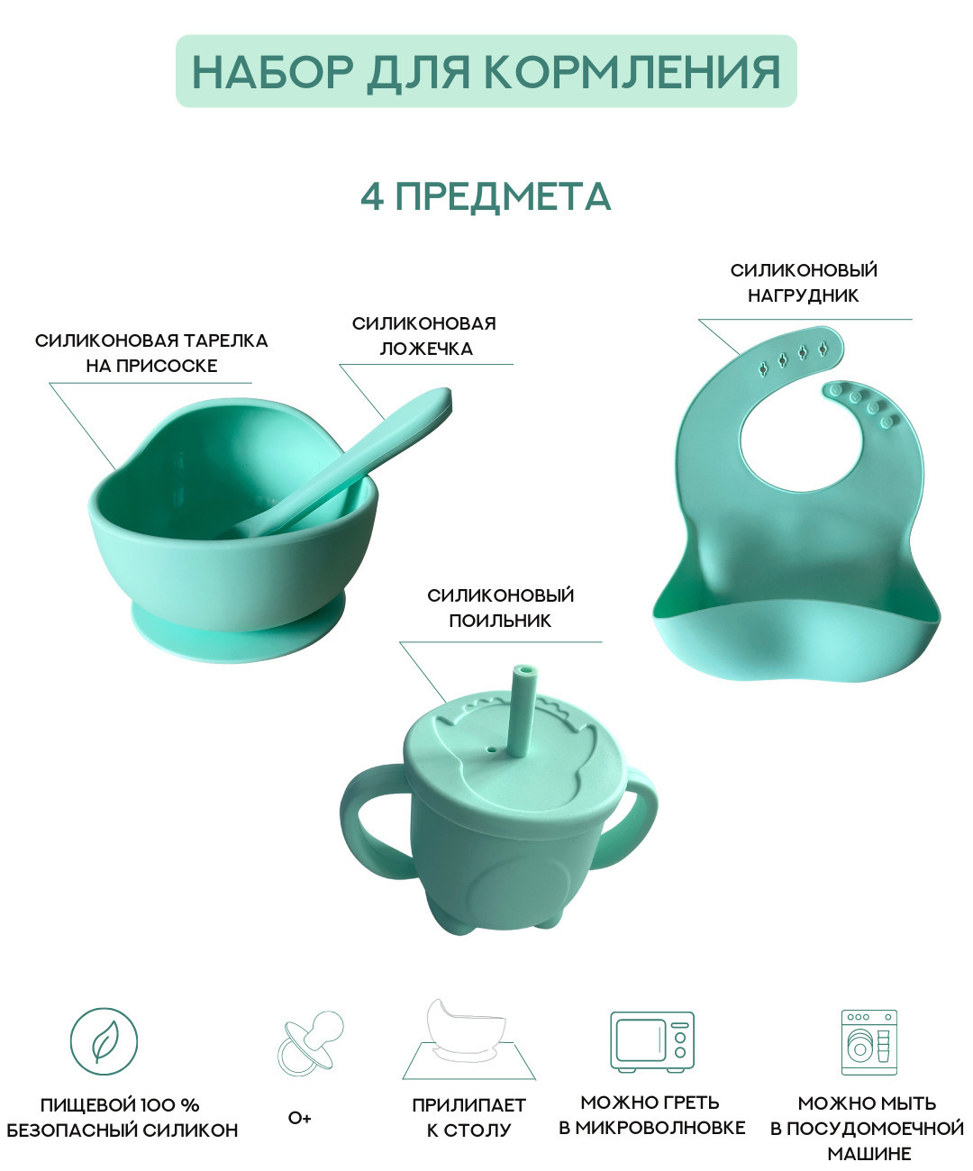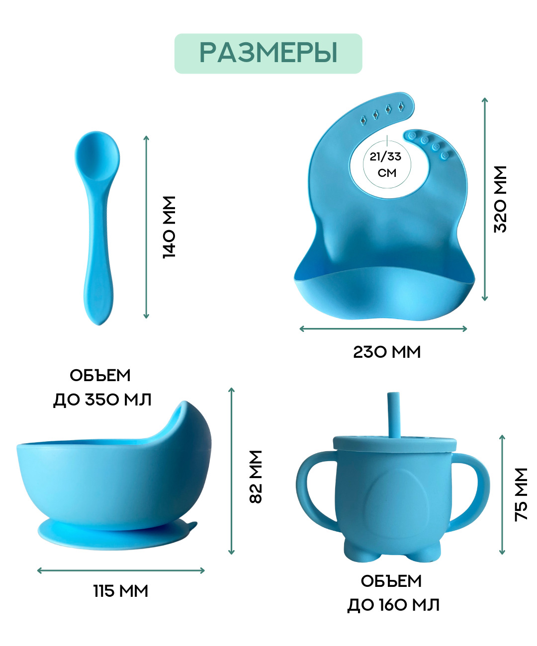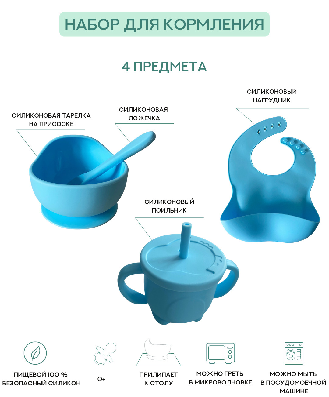 Тарелка с ложкой силиконовая на присоске и нагрудник/Набор для кормления/Набор для первого прикорма