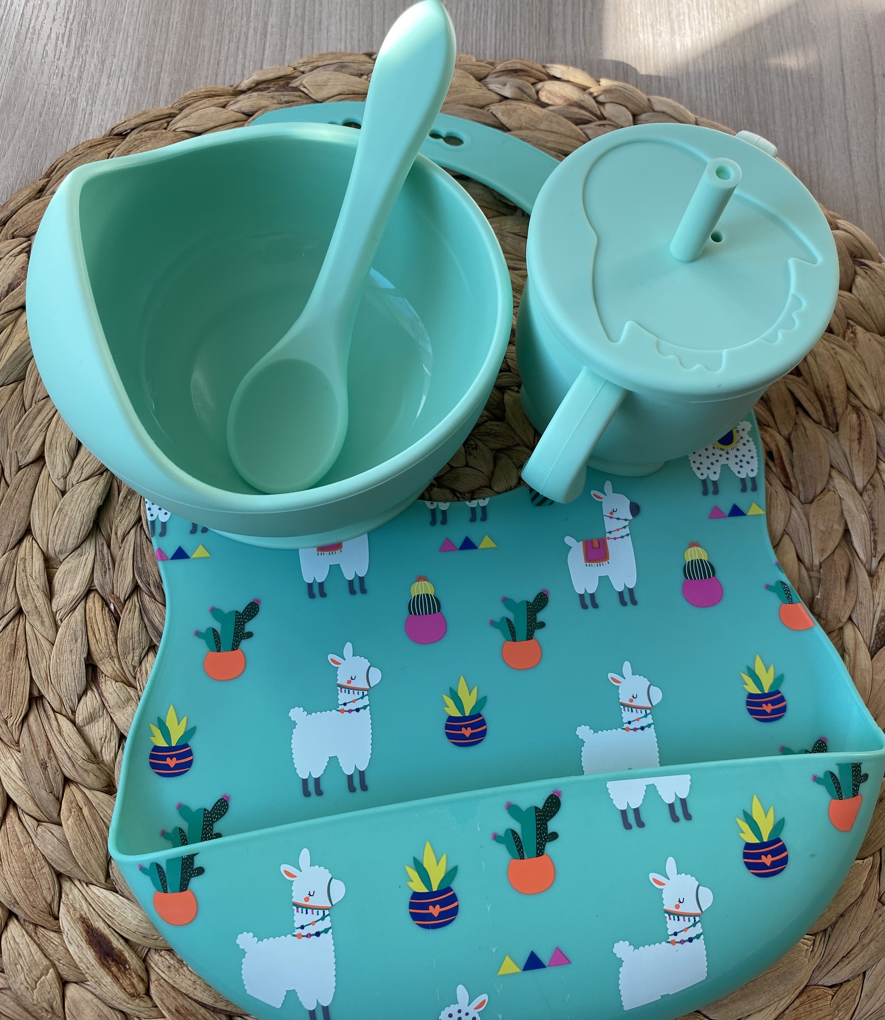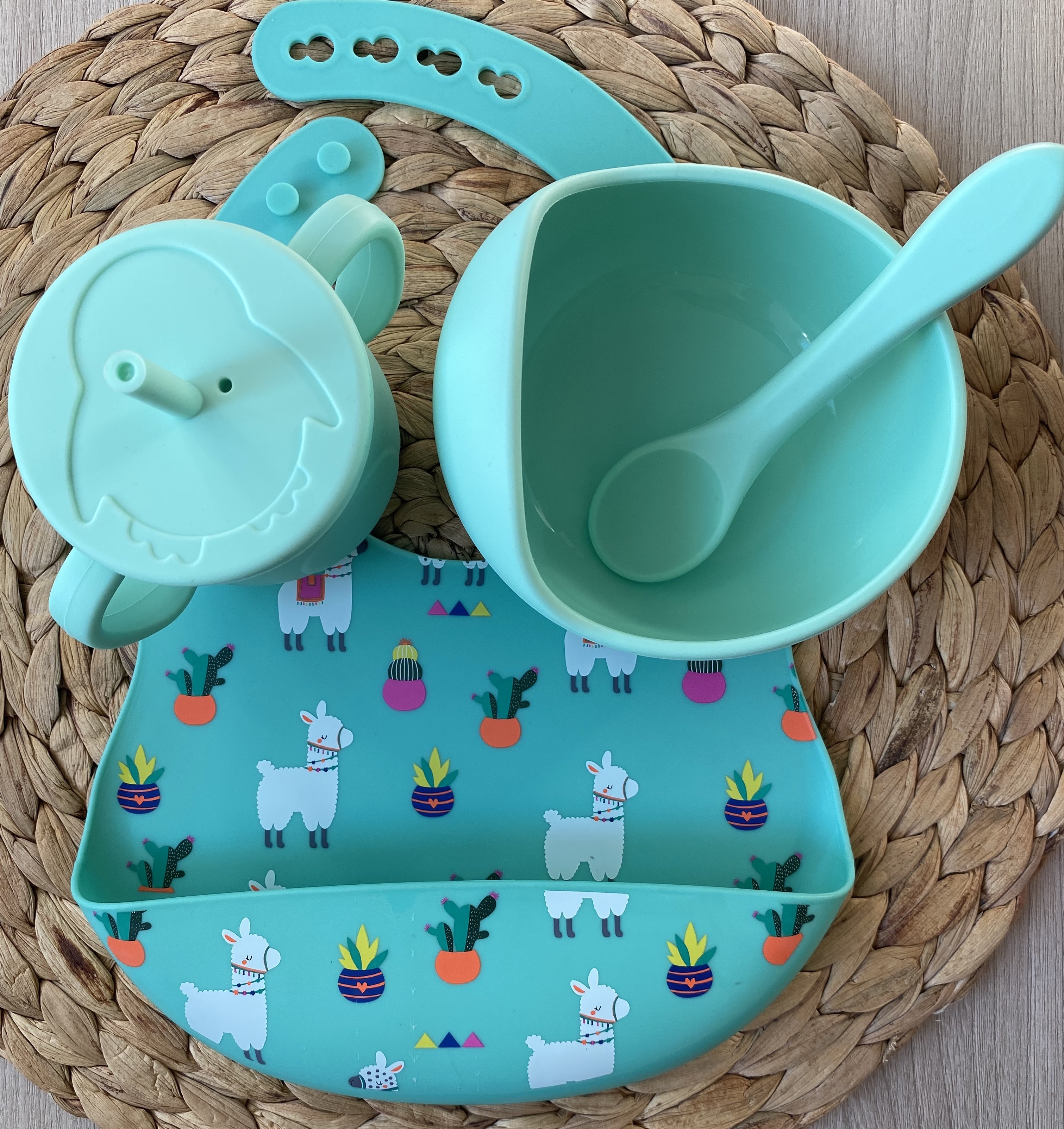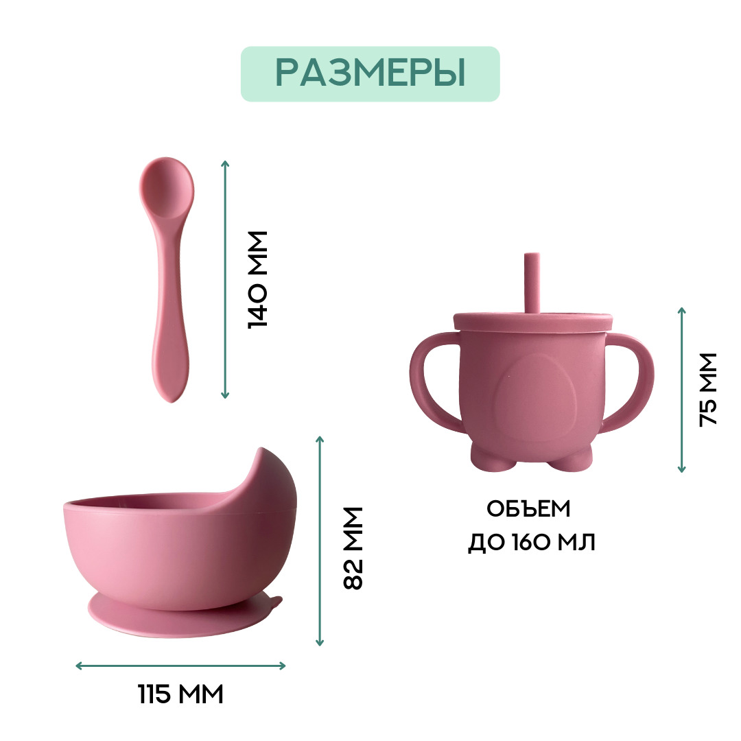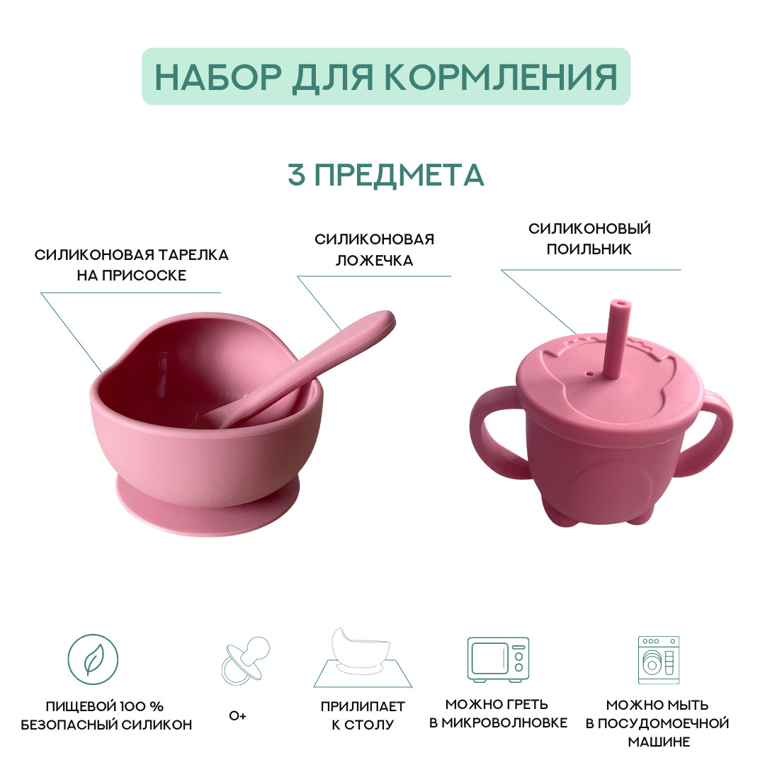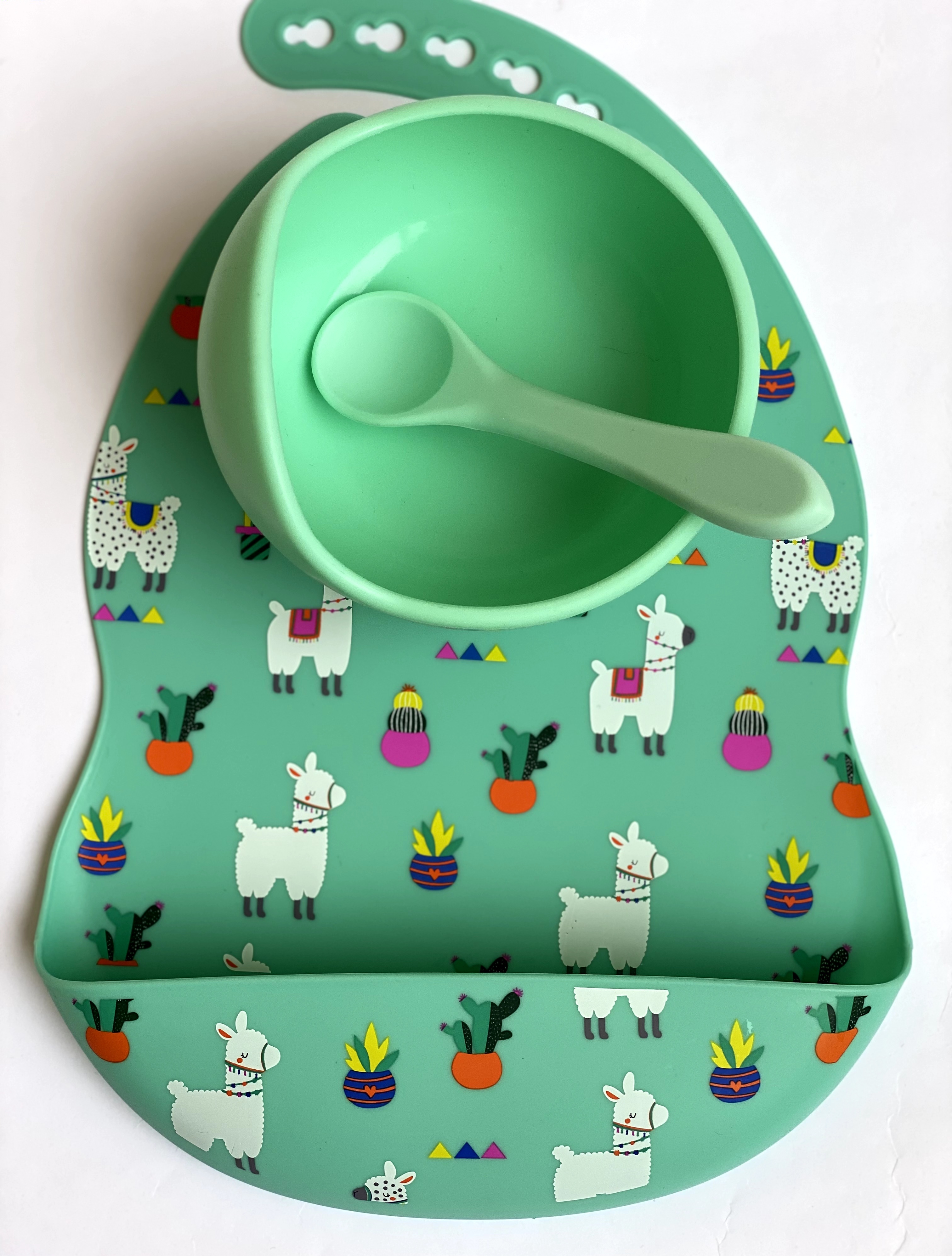 Тарелка с ложкой силиконовая на присоске и нагрудник/Набор для кормления/Набор для первого прикорма