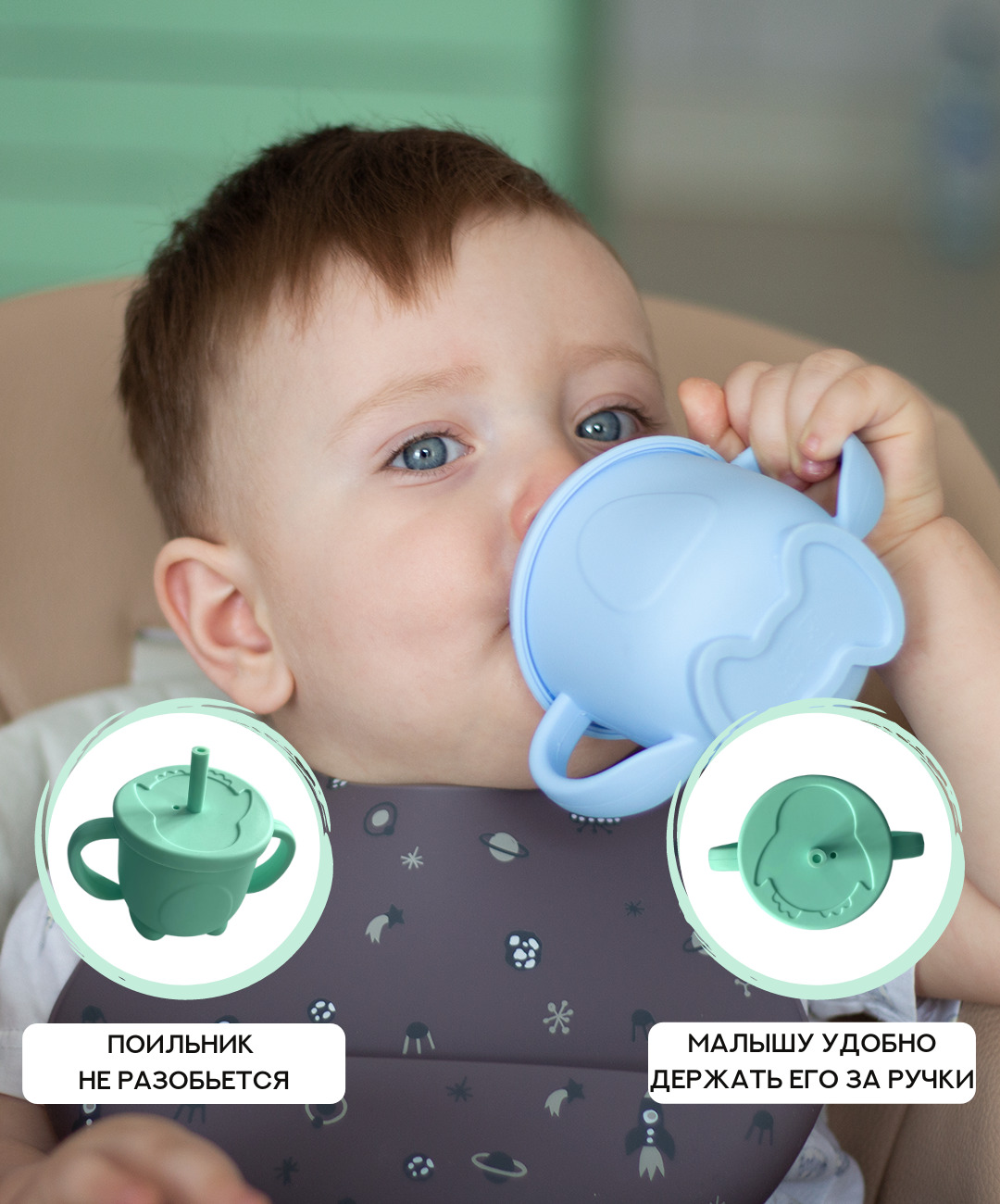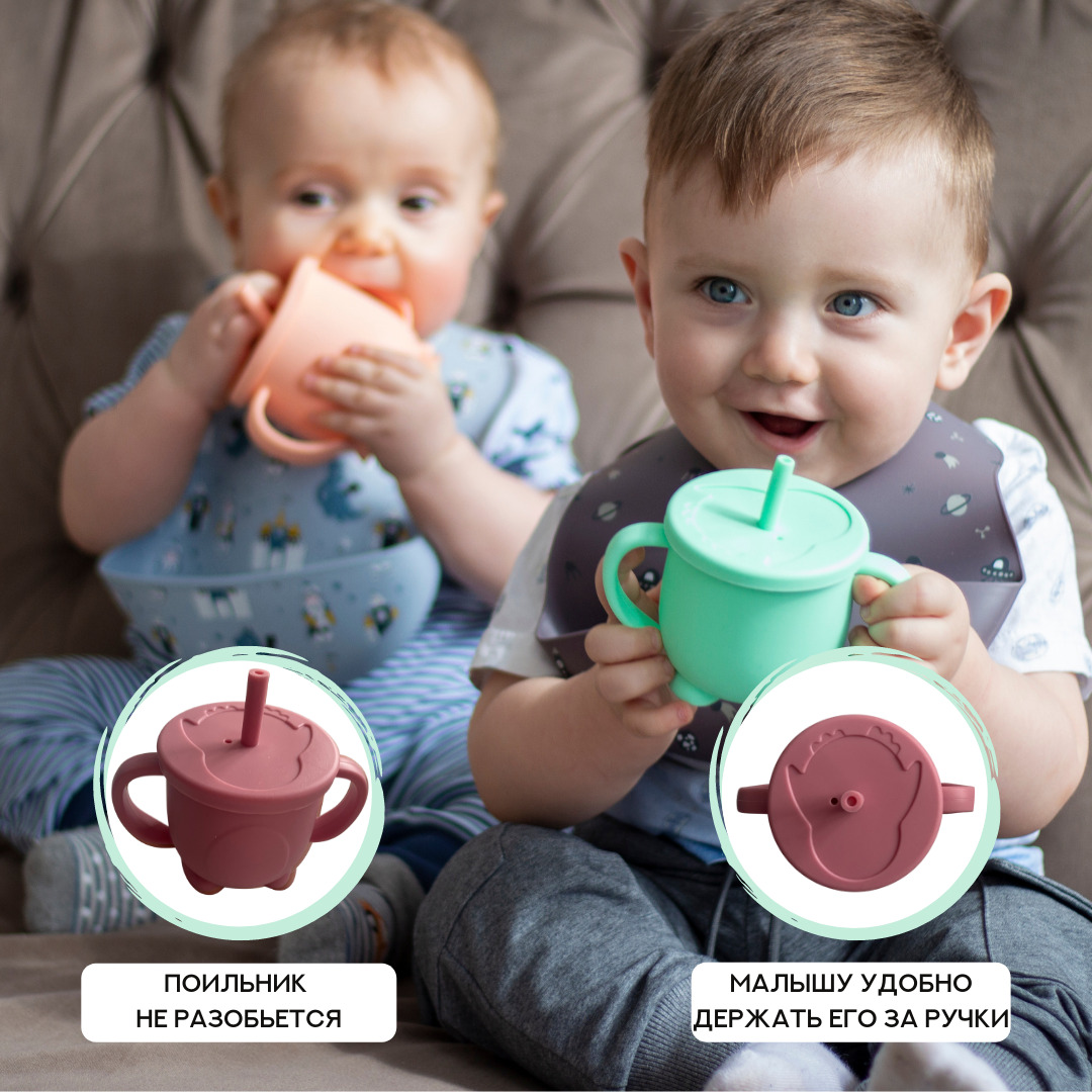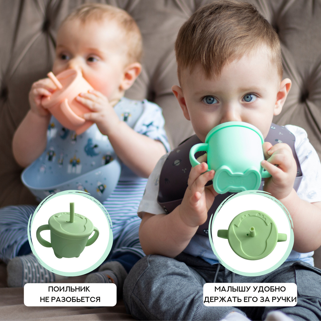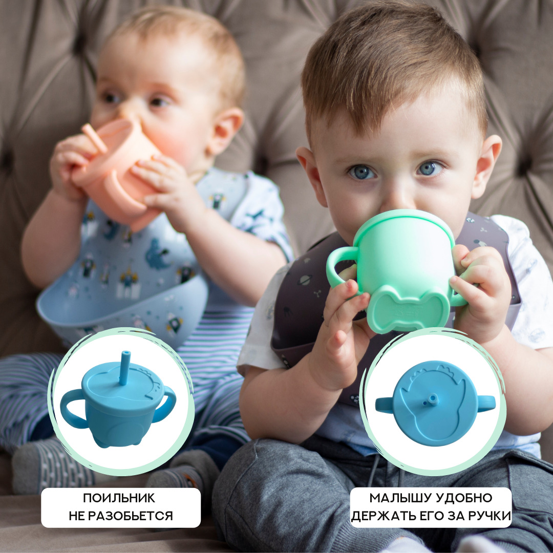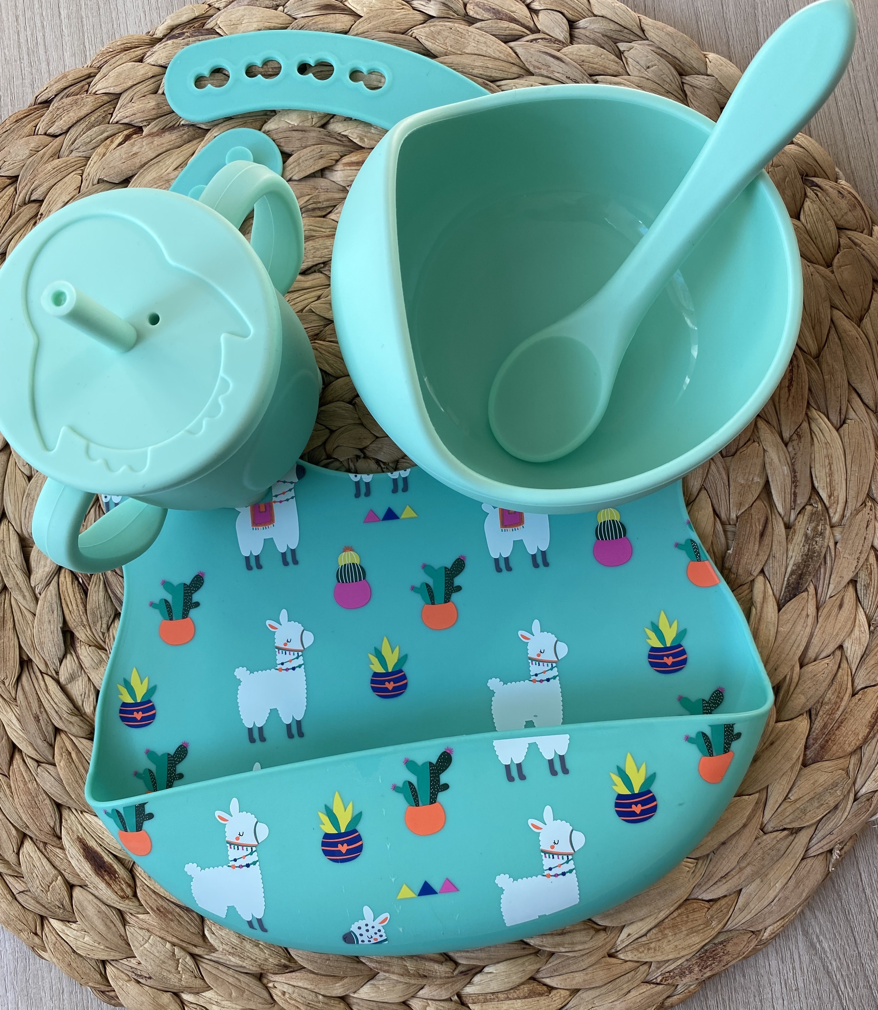 Тарелка с ложкой силиконовая на присоске и нагрудник/Набор для кормления/Набор для первого прикорма
