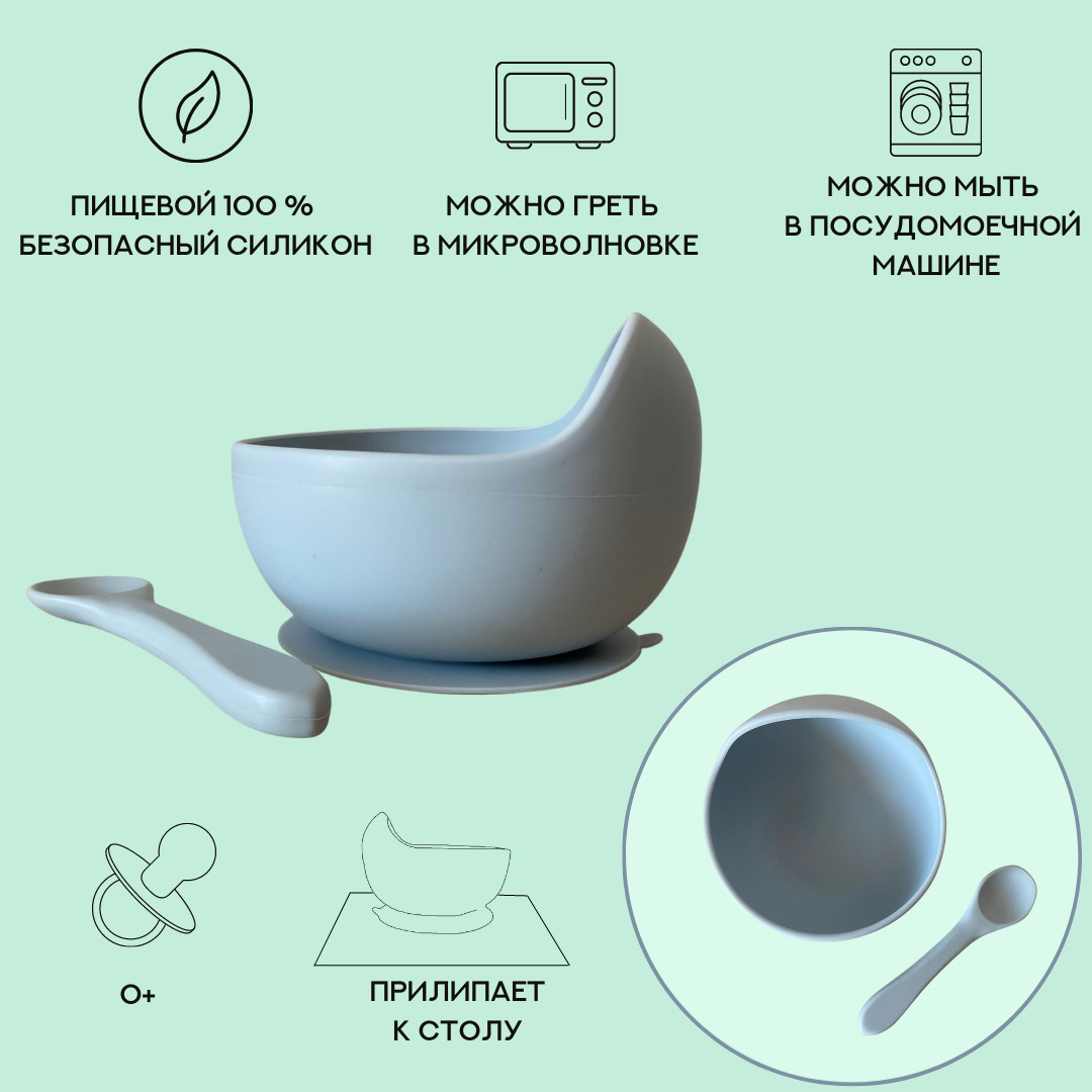 Тарелка силиконовая на присоске с ложкой для первого прикорма/Набор для кормления