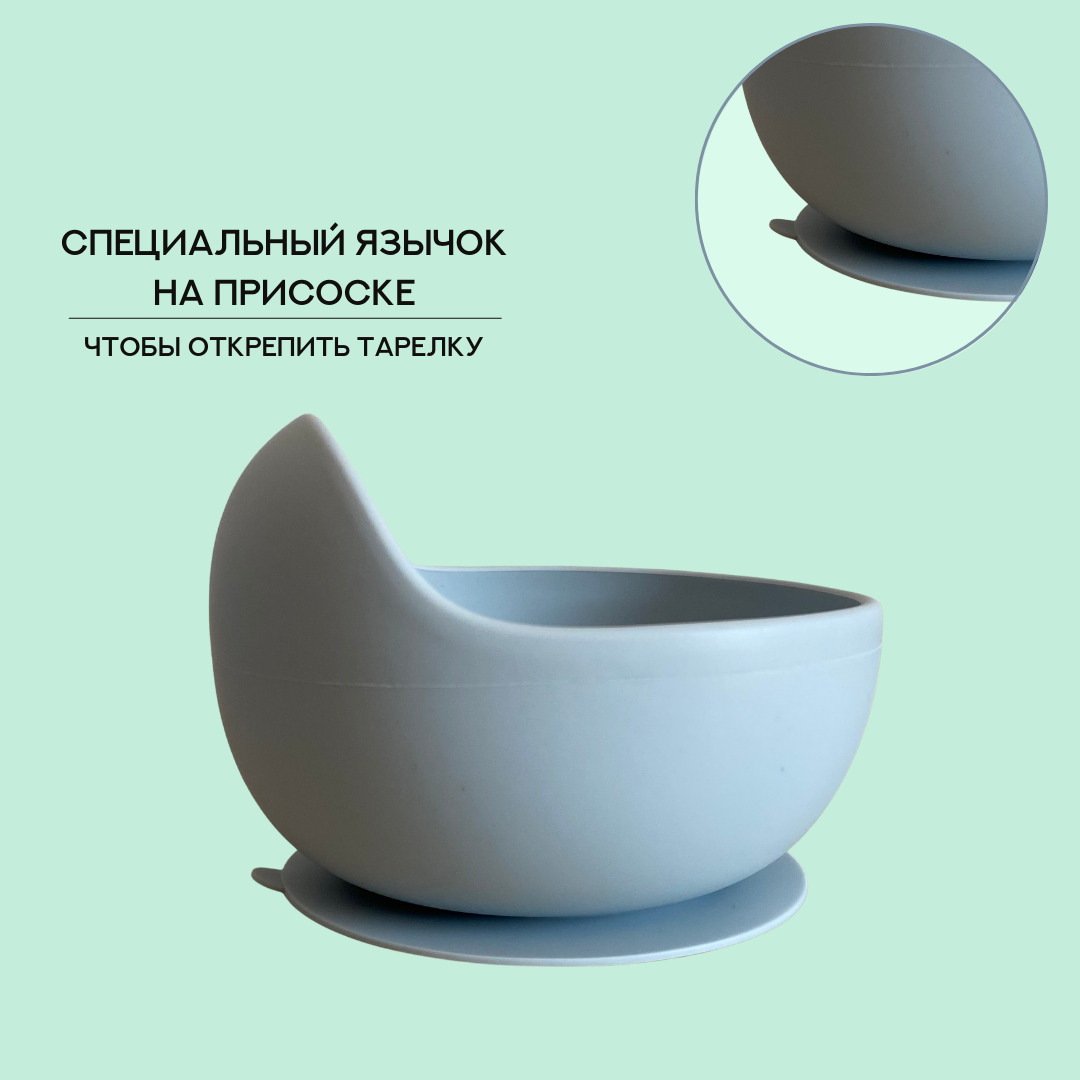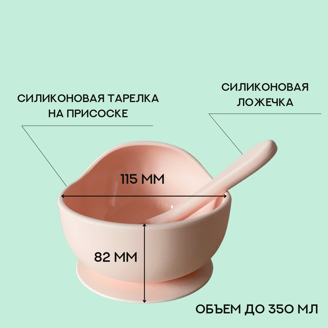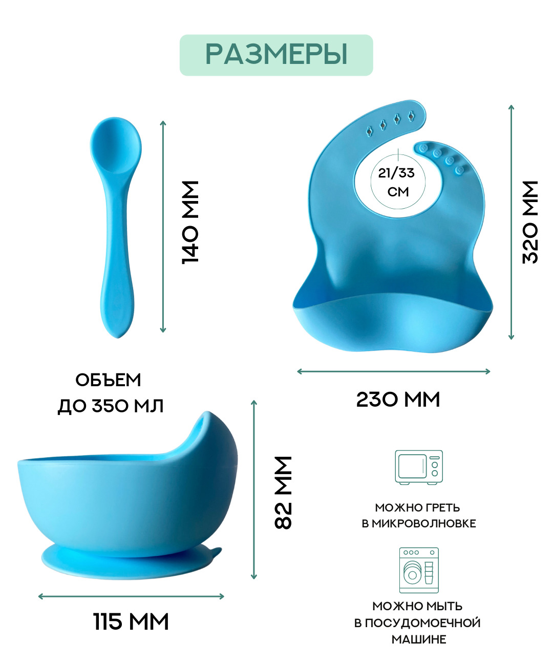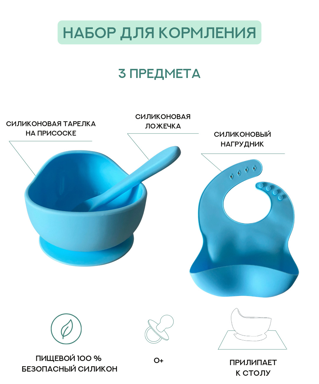 Тарелка с ложкой силиконовая на присоске и нагрудник/Набор для кормления/Набор для первого прикорма