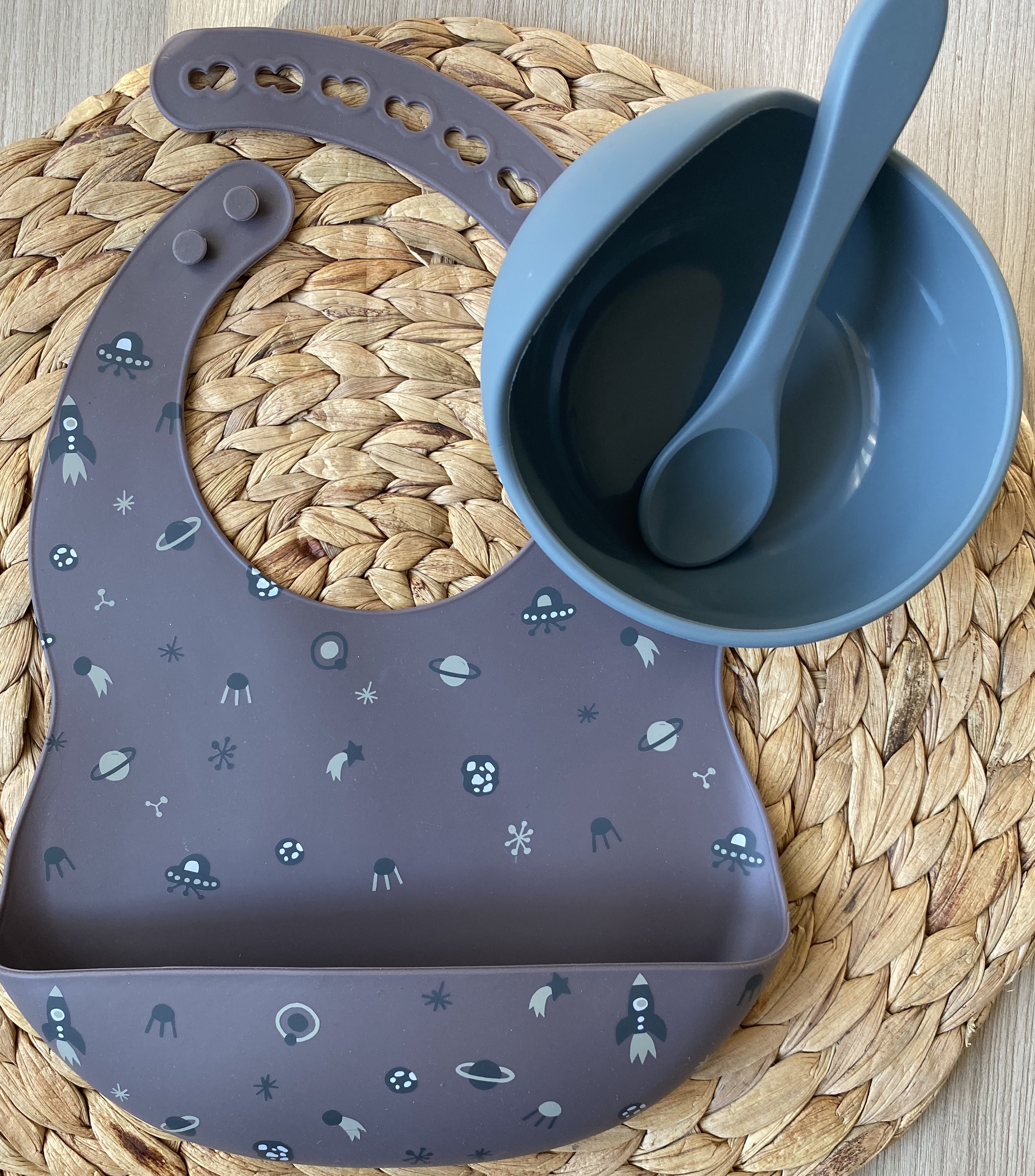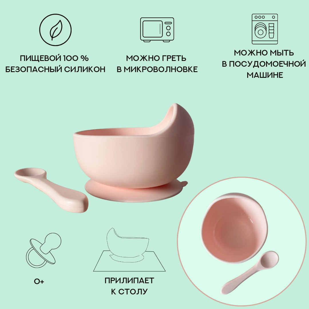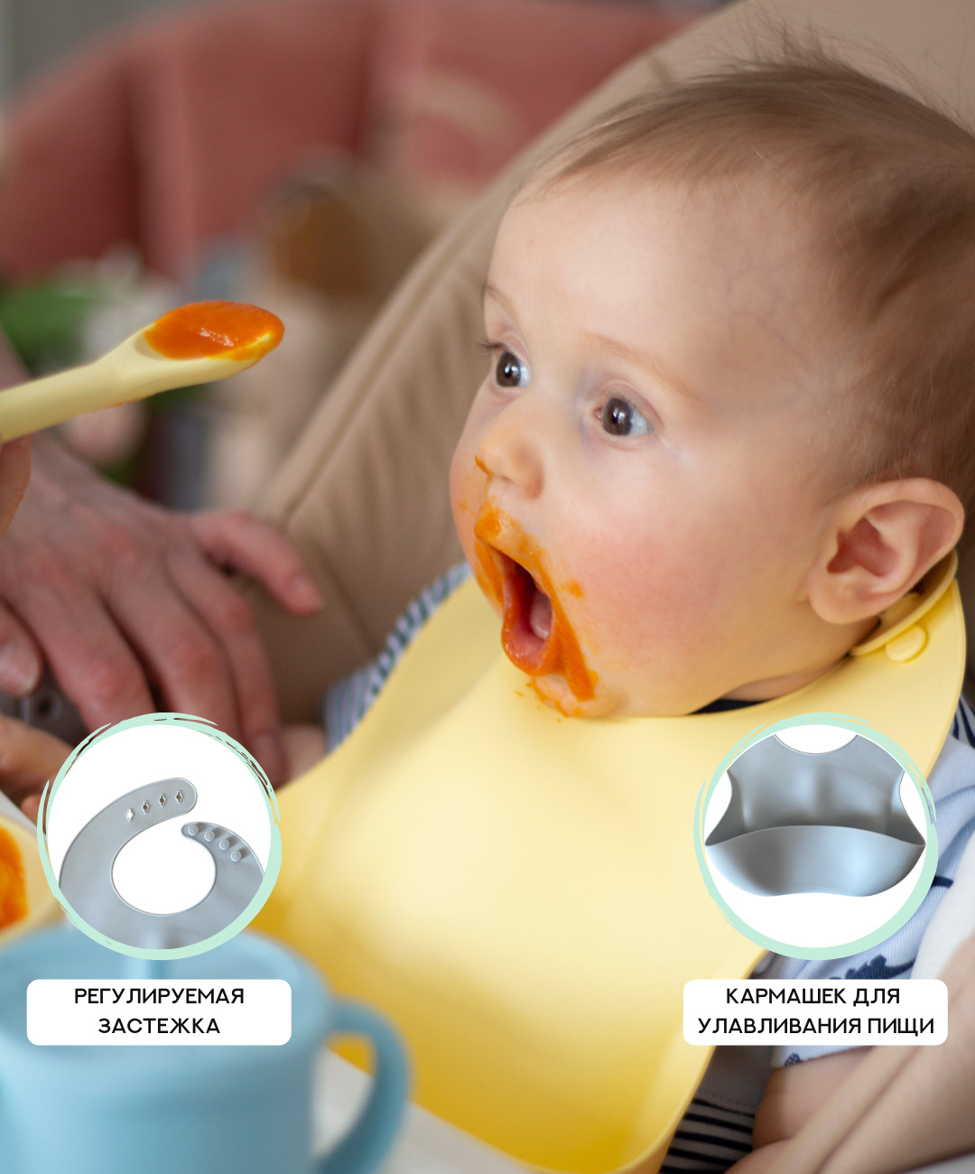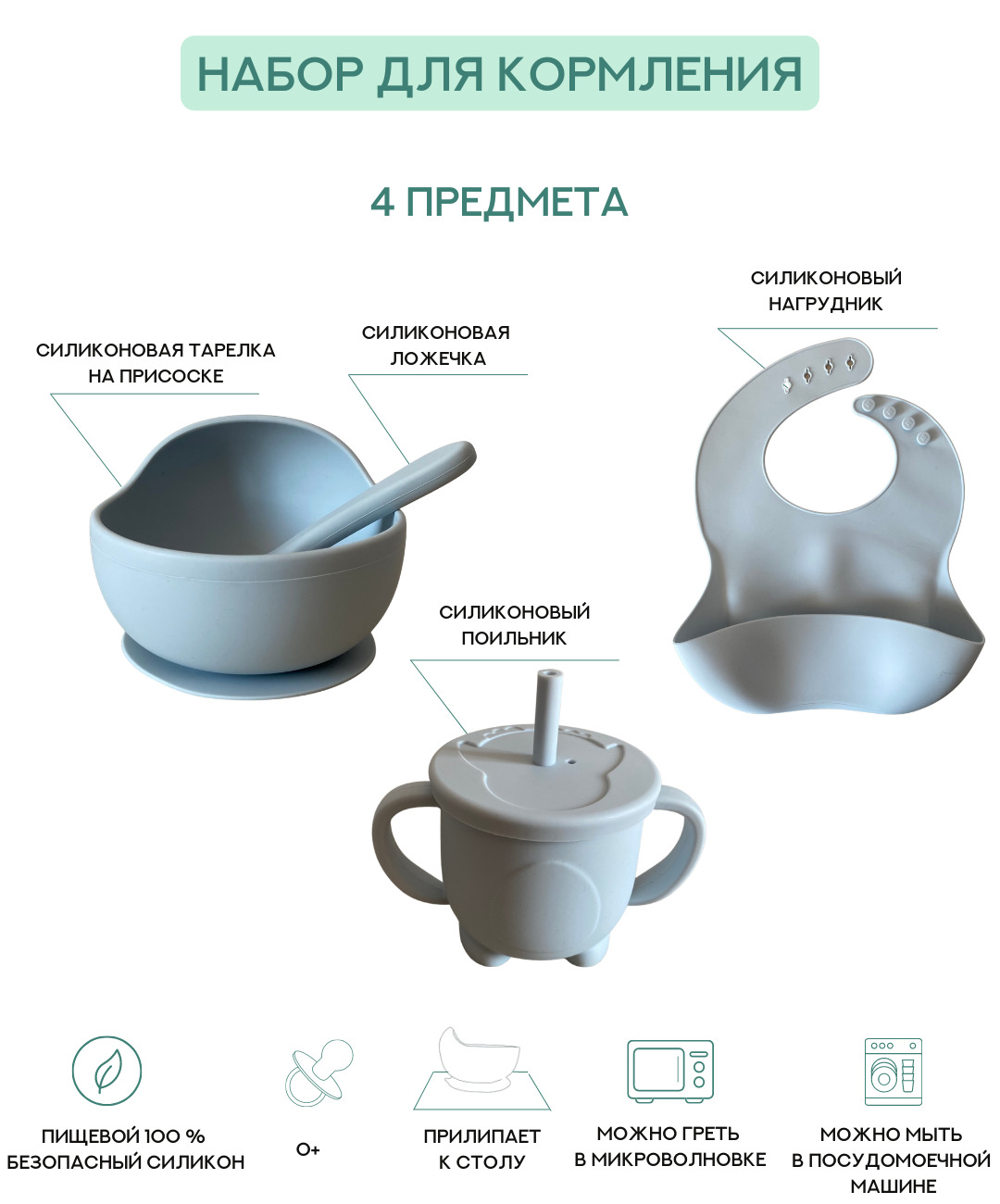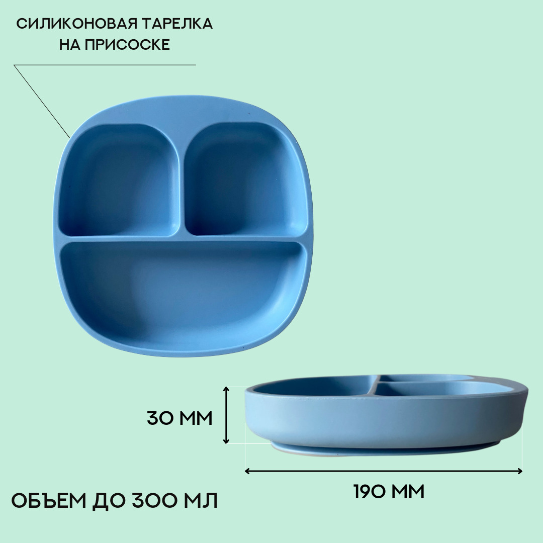 Тарелка с ложкой силиконовая на присоске и нагрудник/Набор для кормления/Набор для первого прикорма