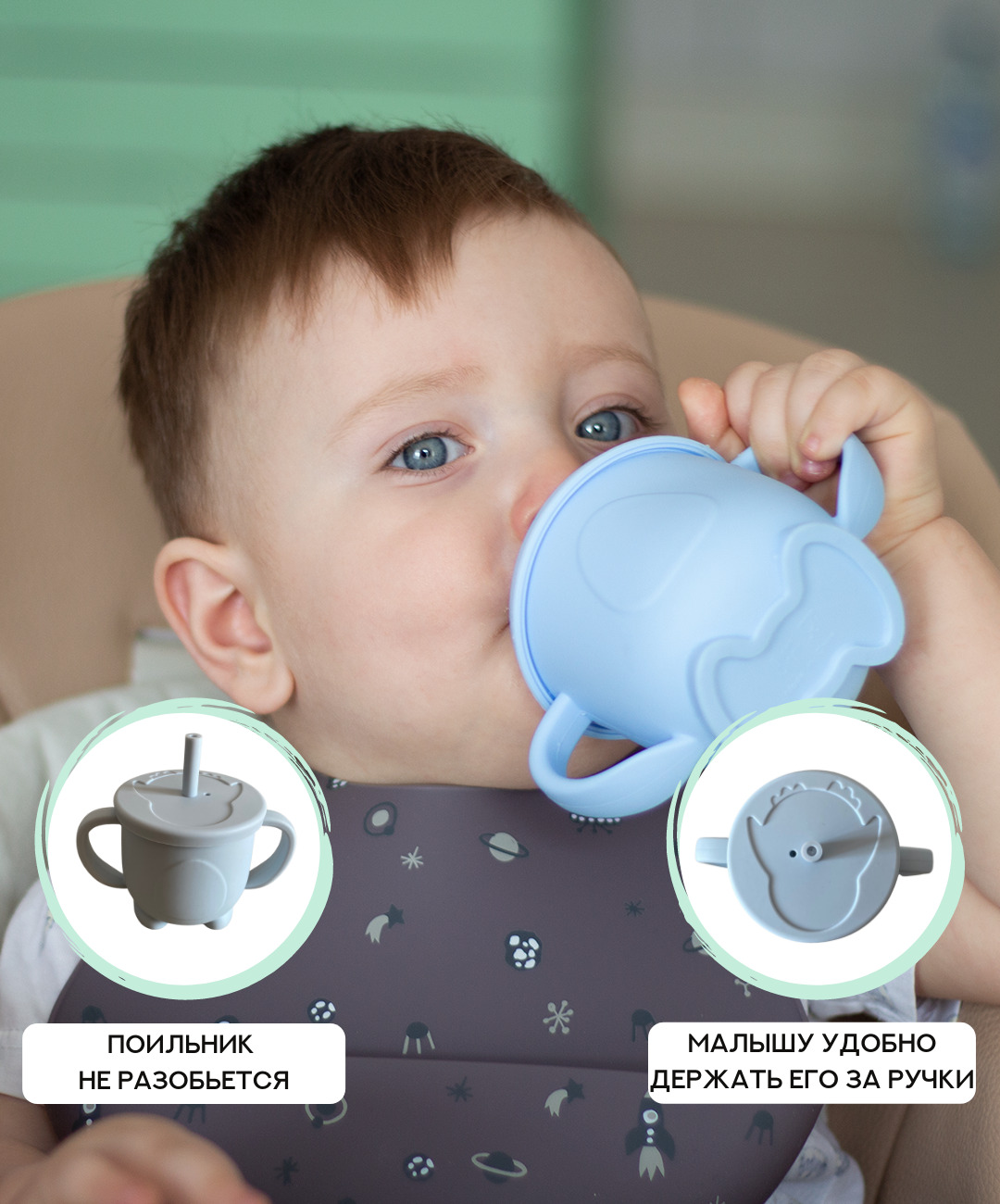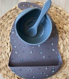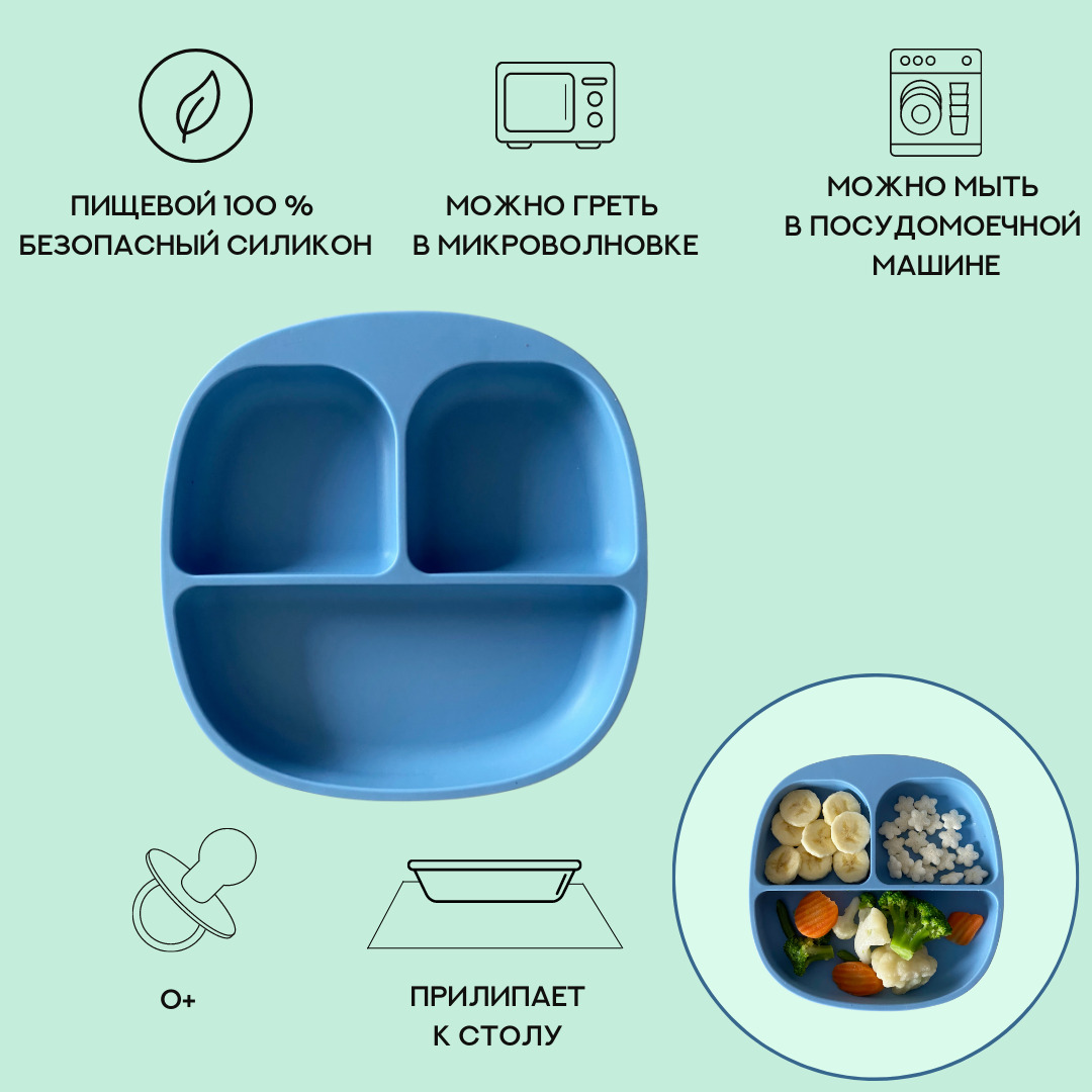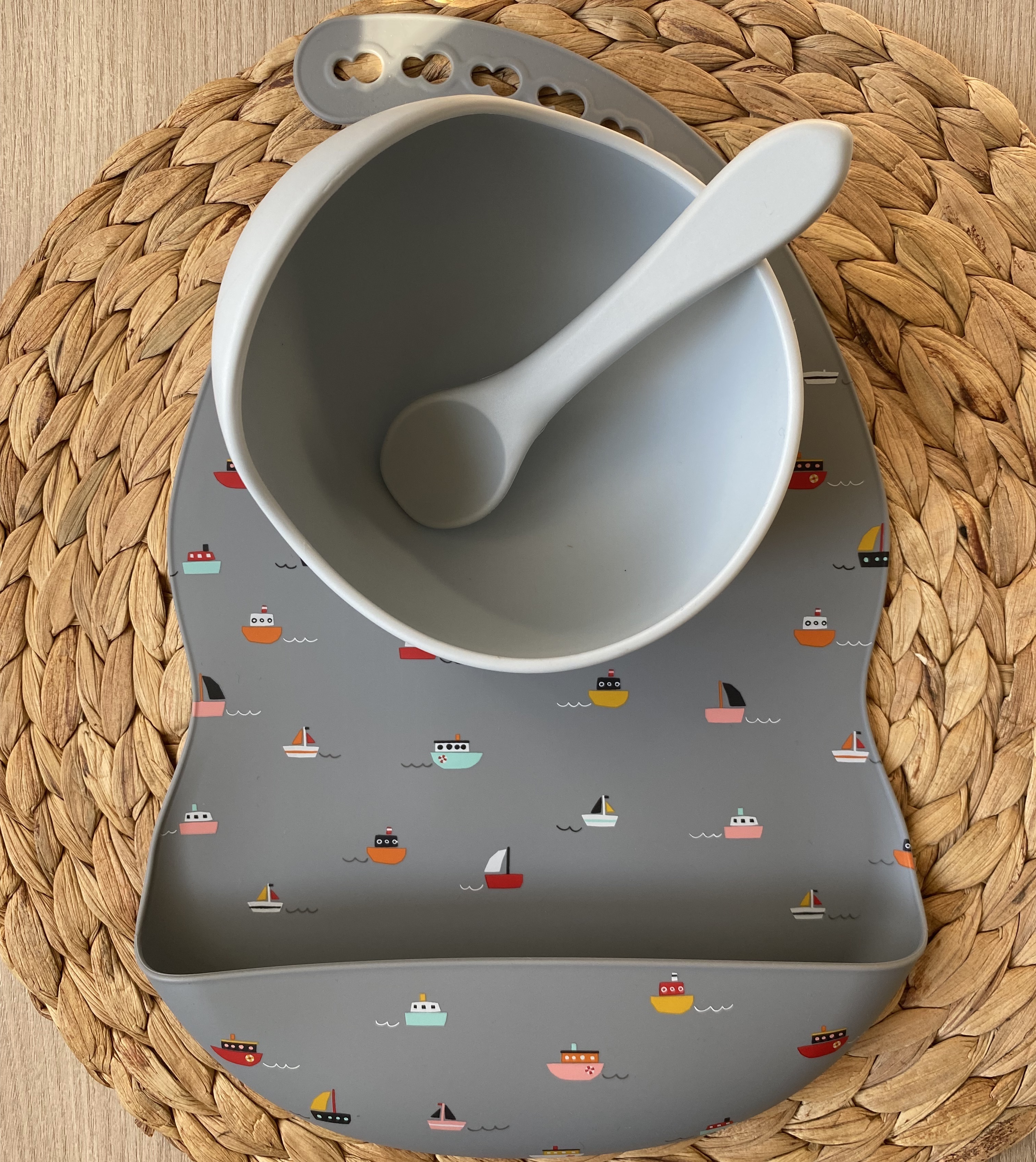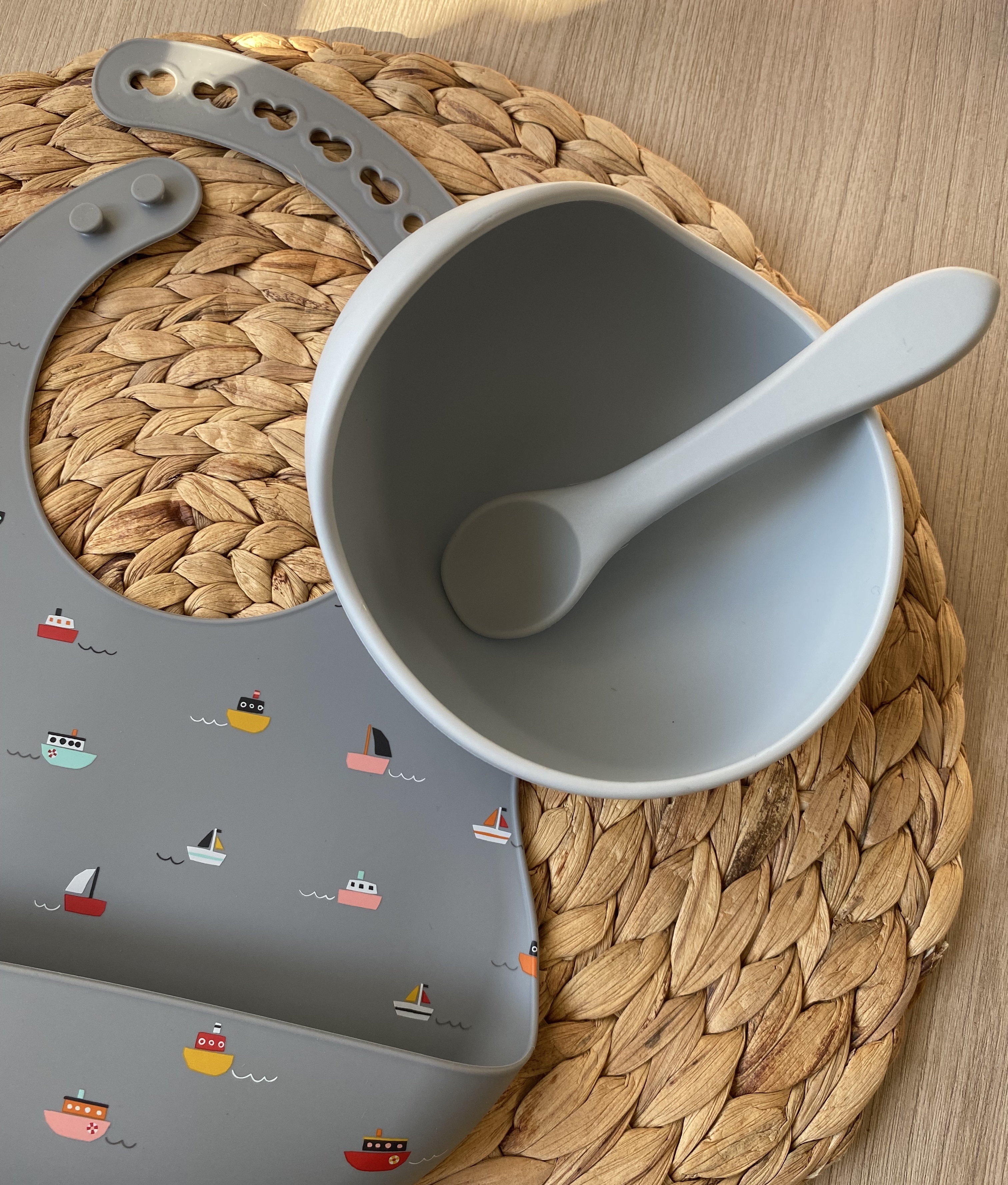 Тарелка с ложкой силиконовая на присоске и нагрудник/Набор для кормления/Набор для первого прикорма