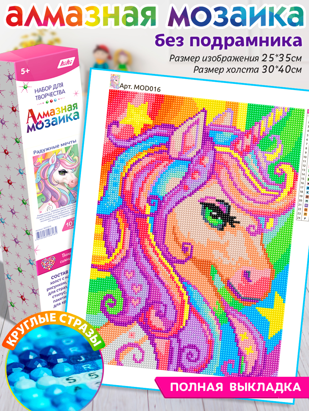 Алмазная мозаика "Радужные мечты", Размер изображения 25*35см, размер холста 30*40, полная выкладка
