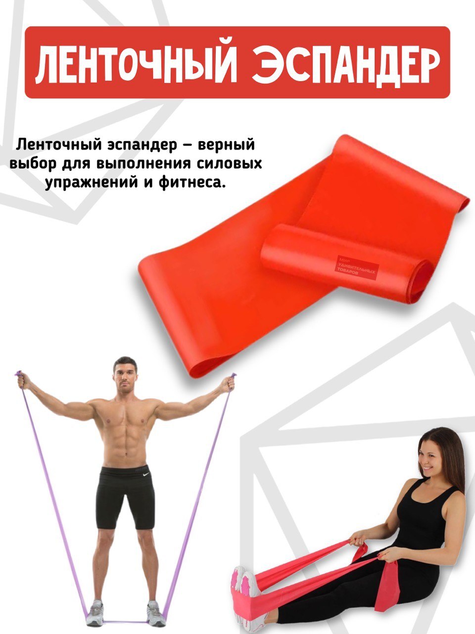 Эластичная лента для фитнеса,йоги и пилатеса 190 см, красная