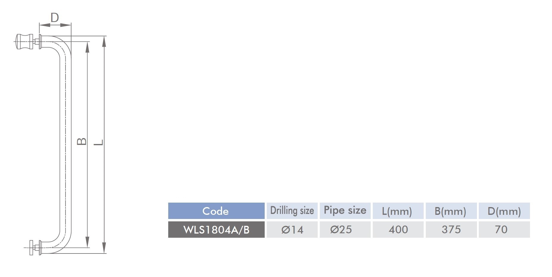 Ручка для двери стеклянной душевой кабины, шлифованная нержавеющая сталь