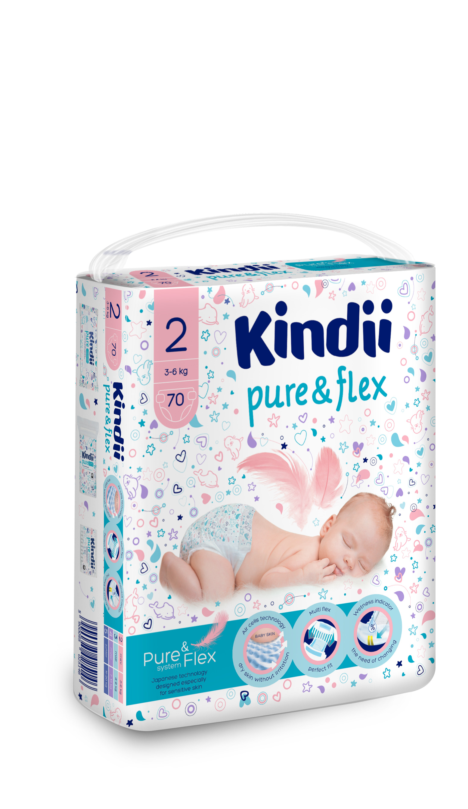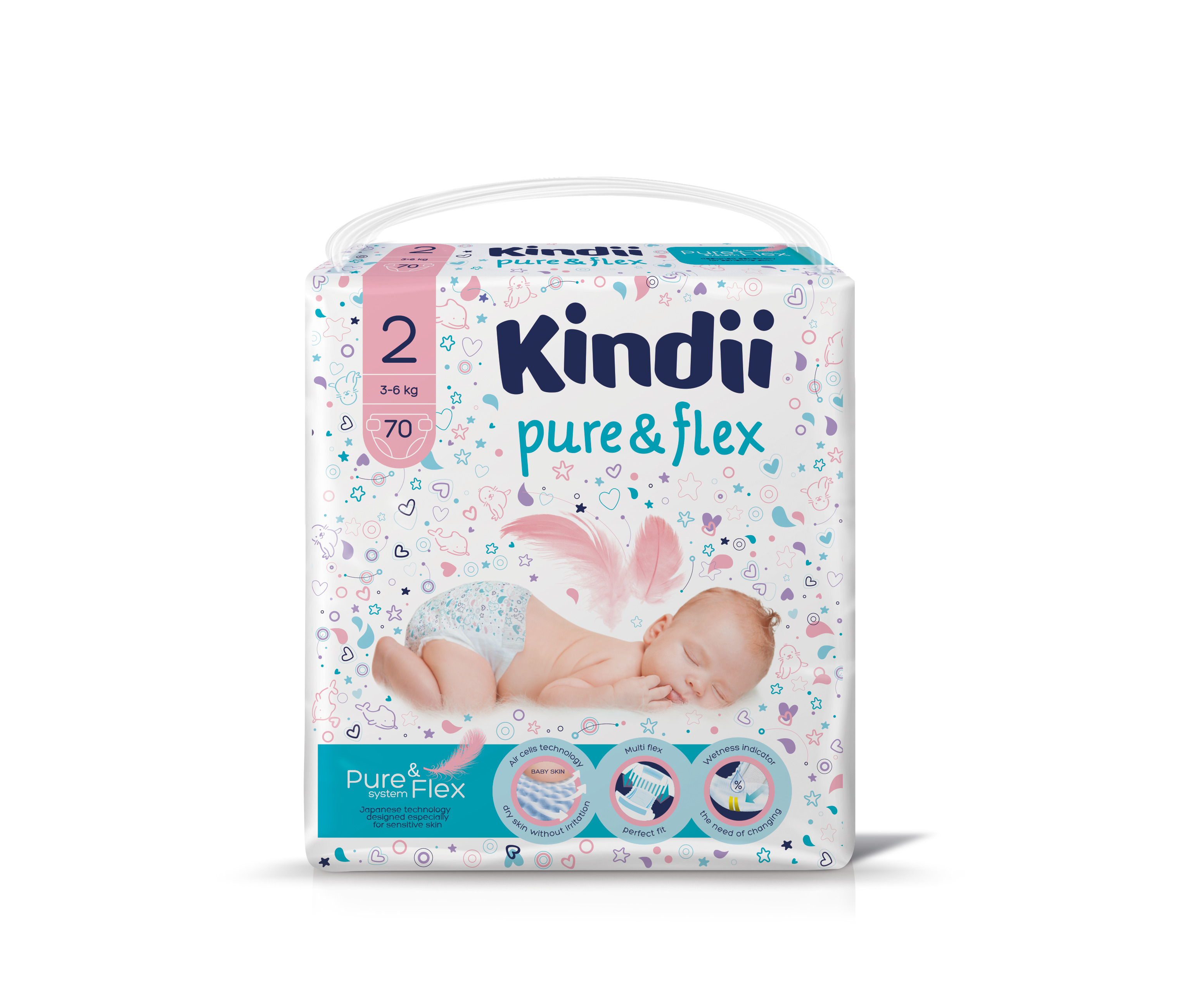 KINDII PURE&FLEX Подгузники одноразовые для детей 2S, mega-pack,70 шт