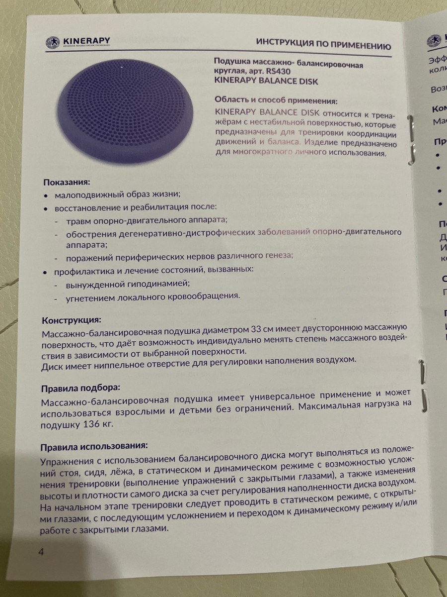 Балансировочный диск / подушка на стул и сиденье KINERAPY Balance Disk, арт. RS430