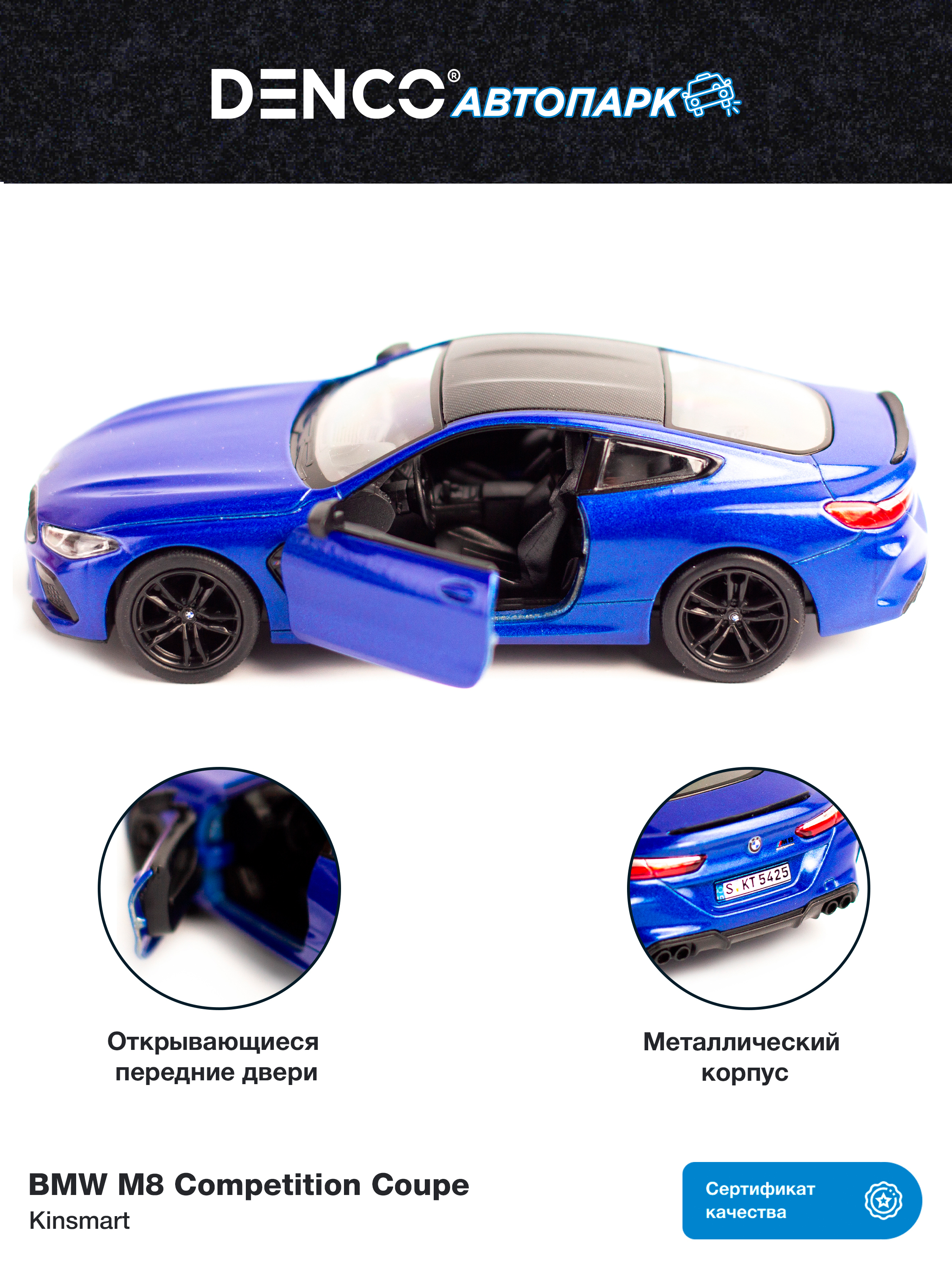 Металлическая машинка Kinsmart 1:34 BMW M8 Competition Coupe KT5425D, инерционная / Синий