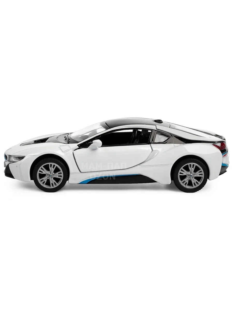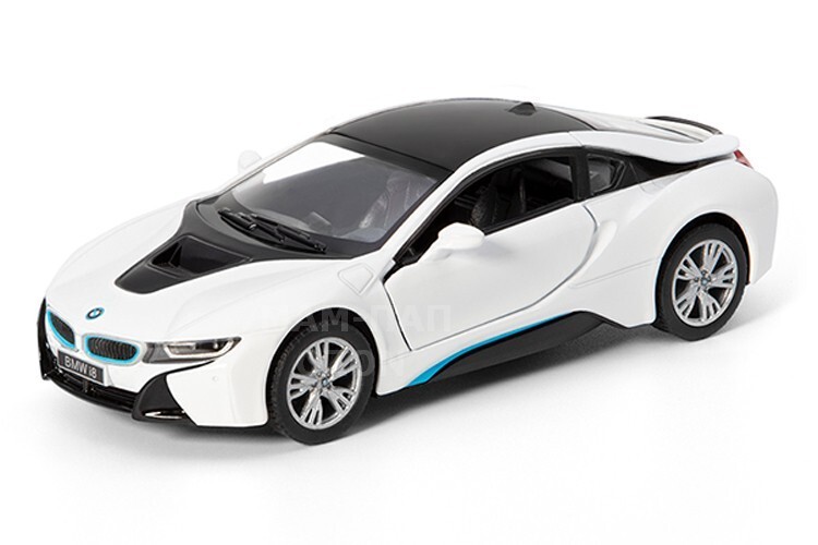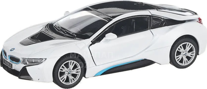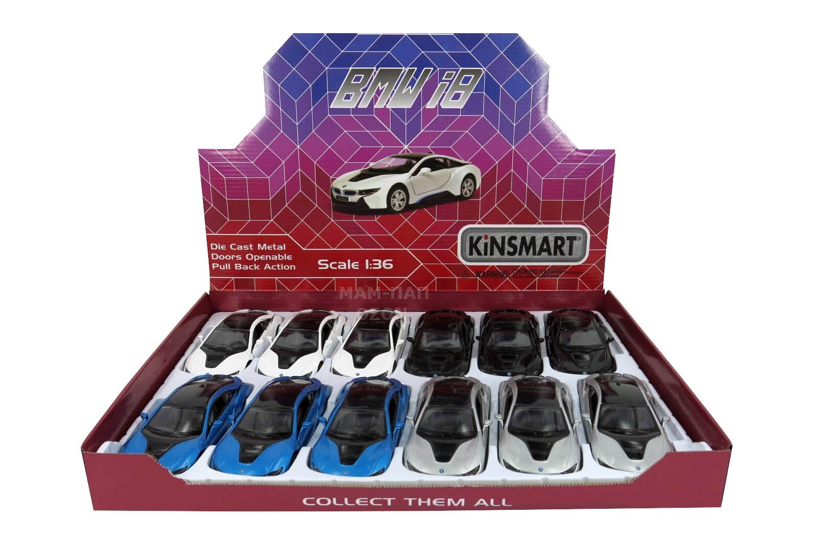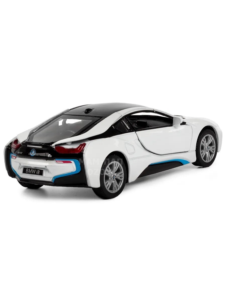 Машинка металлическая Kinsmart 1:36 BMW i8 в обвесе 5379DKT инерционная, двери открываются / Белый