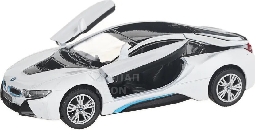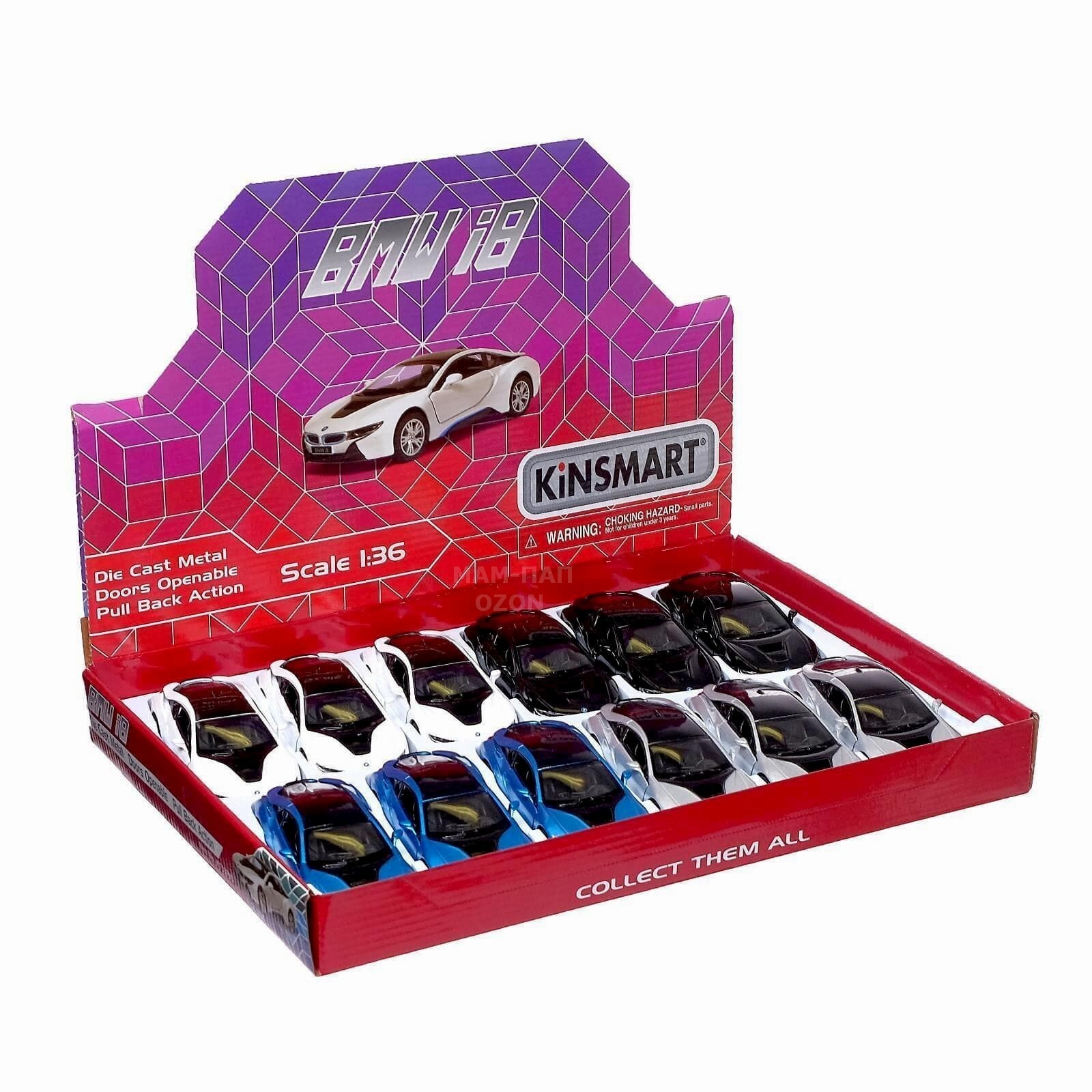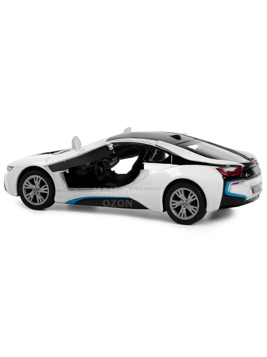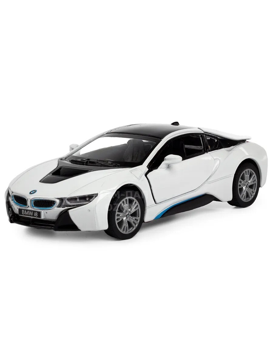 Машинка металлическая Kinsmart 1:36 BMW i8 в обвесе 5379DKT инерционная, двери открываются / Белый