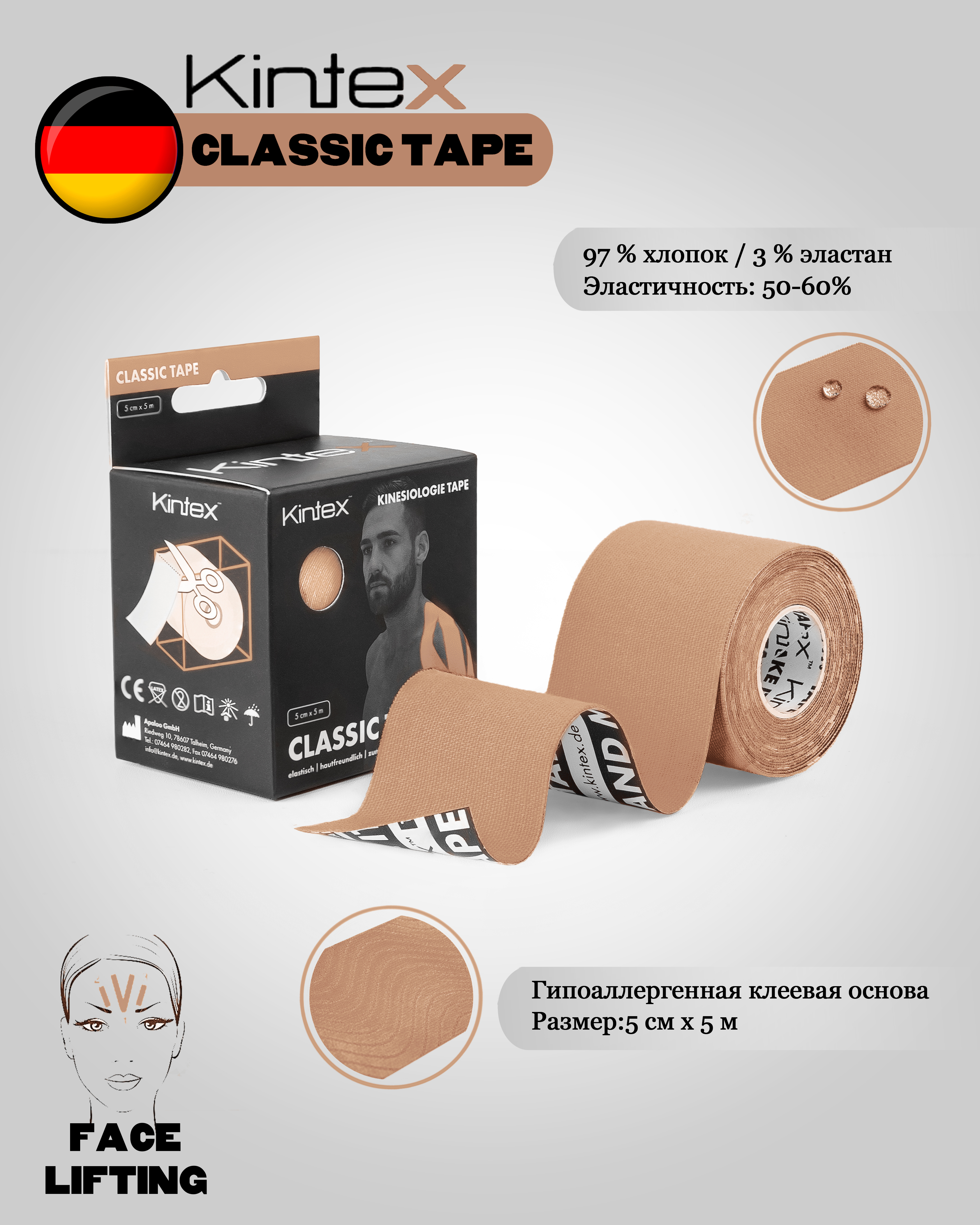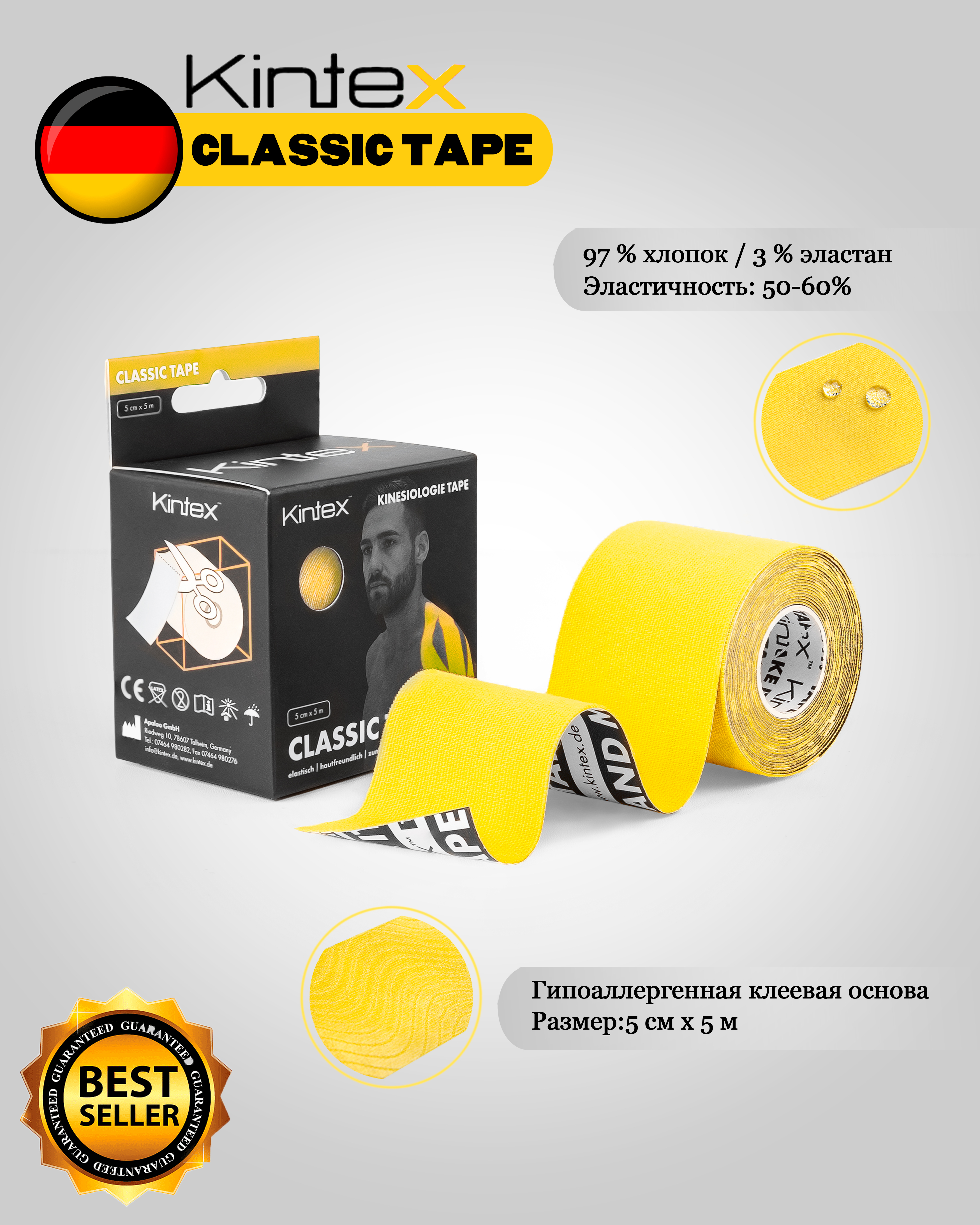 Биомеханический тейп, Кинезиотейп Kintex Кинезиологическая лента "Классик" 5см Х 5 м, желтый