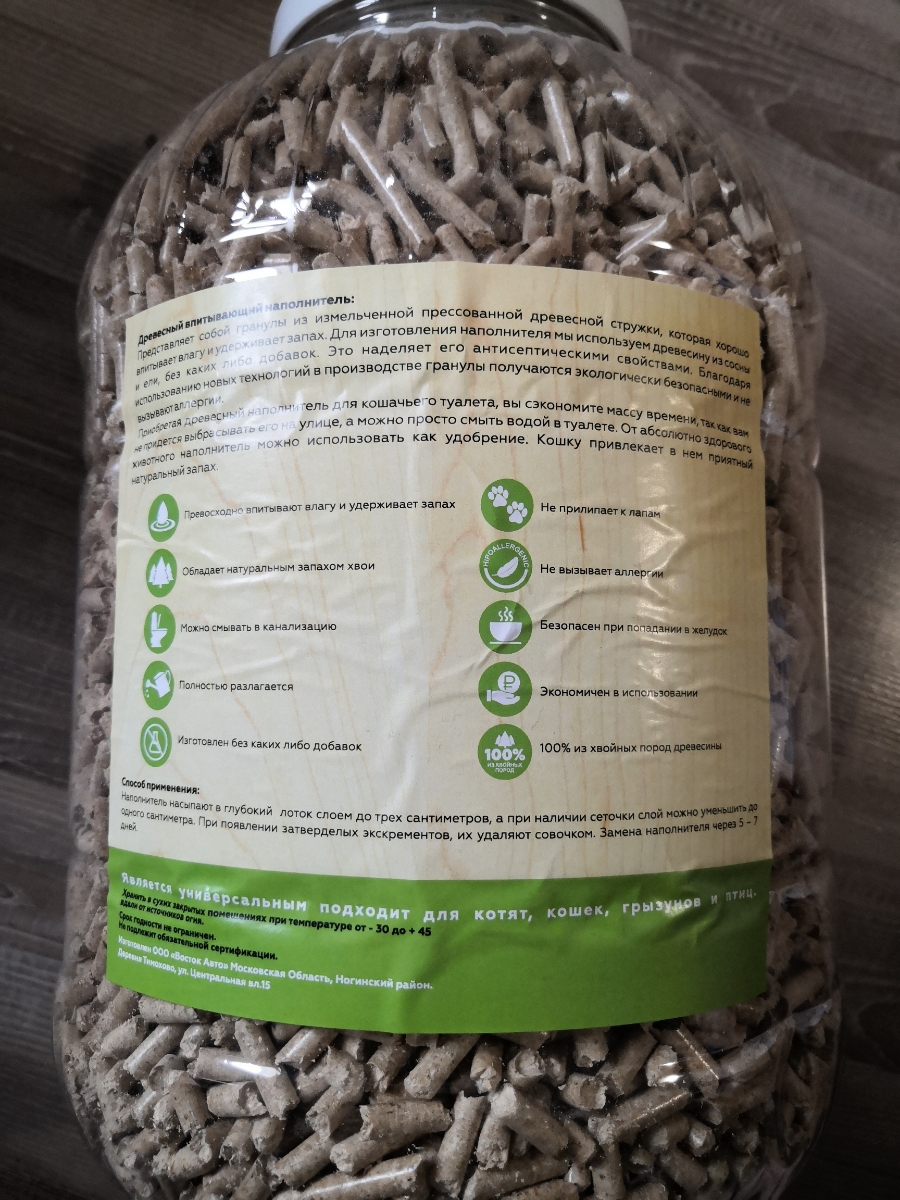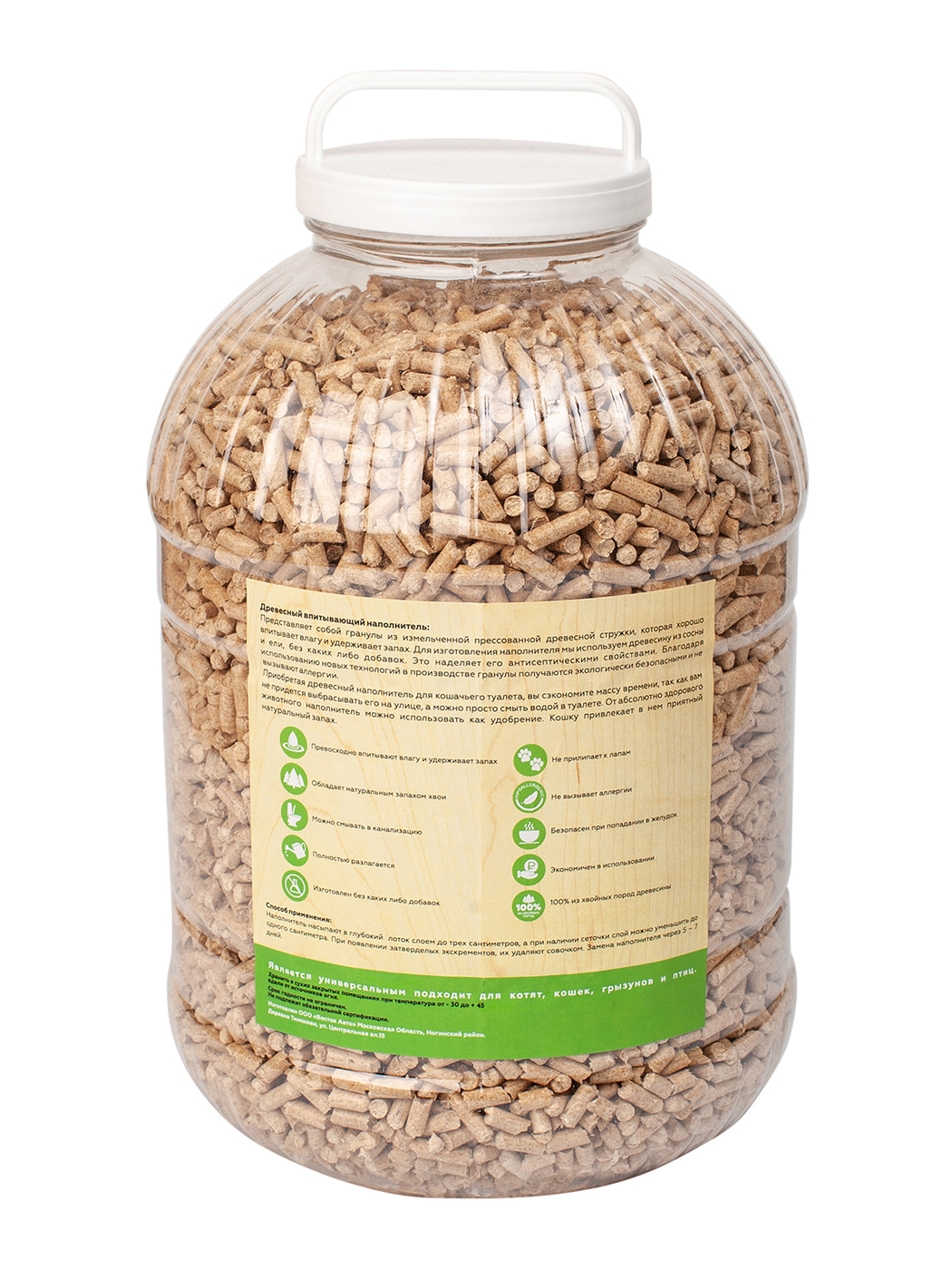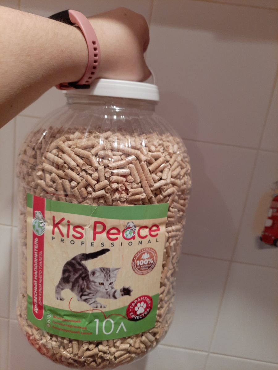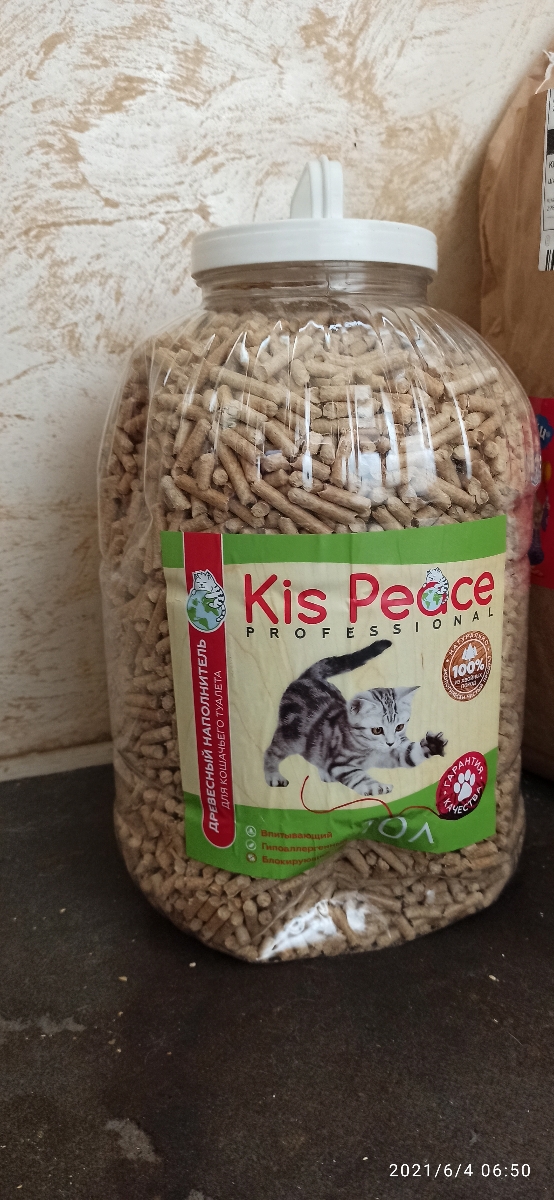 Наполнитель для кошачьего туалета древесный Kis Peace, светлые гранулы, 10л (7,2 кг)