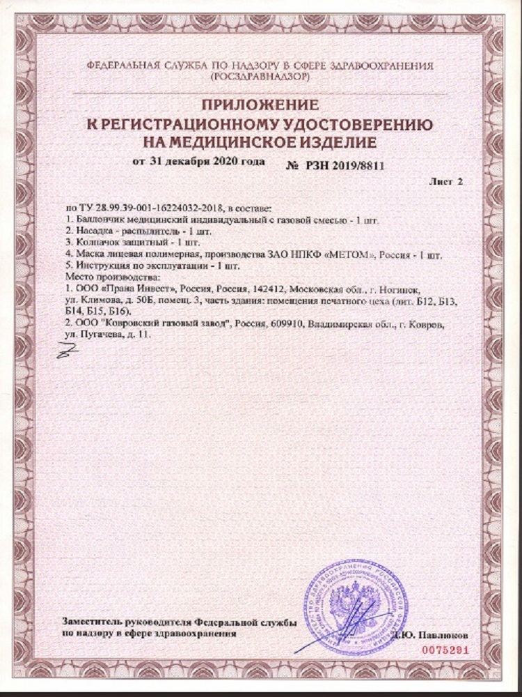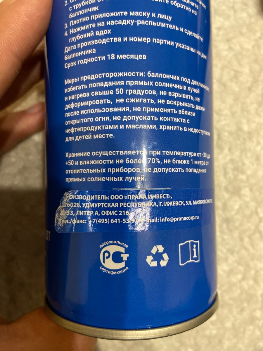 Кислород 80% Дыхательная смесь Kislorod, 16л, с маской
