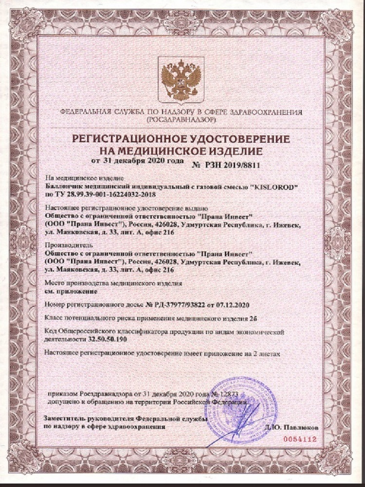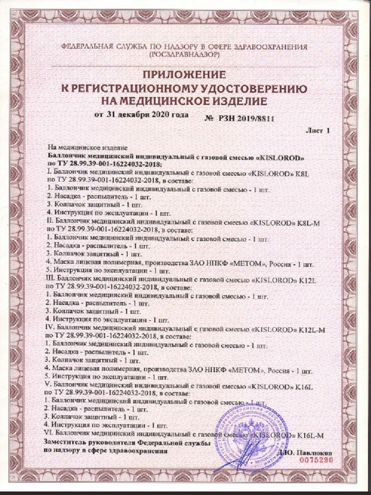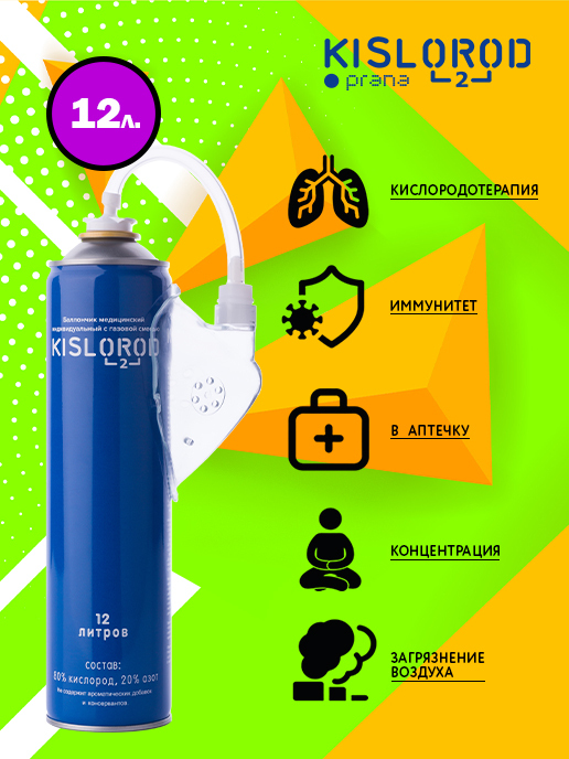 Баллончик кислородный /медицинский индивидуальный с газовой смесью KISLOROD К12L-М( с маской)