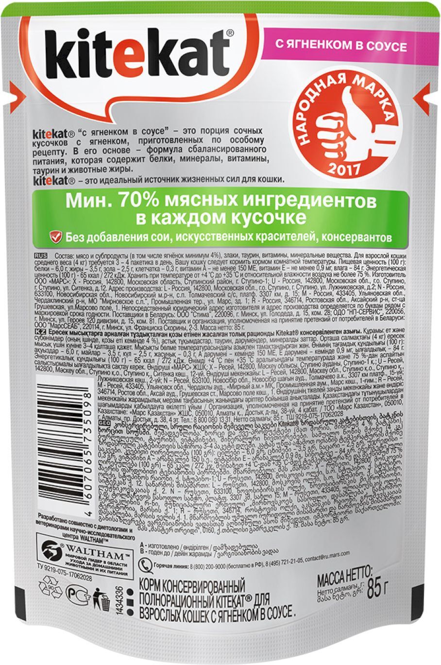 Корм для кошек Kitekat с ягненком (кусочки в соусе)
