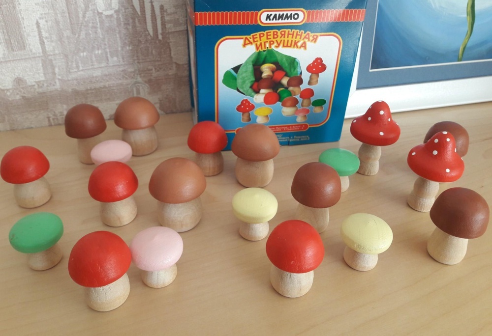 Игровой набор грибов ( мешочек с деревянными игрушками)