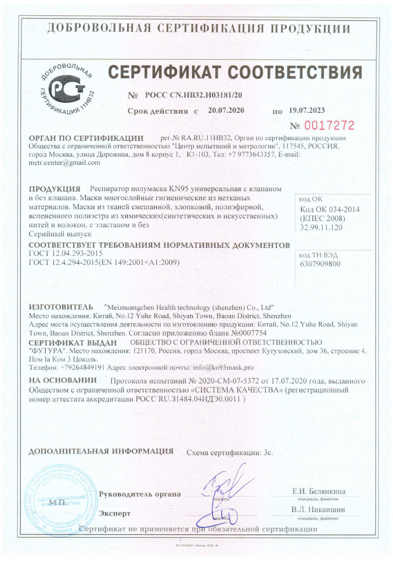 Респиратор универсальный KN95, FFP2, размер Универсальный, 20 шт.