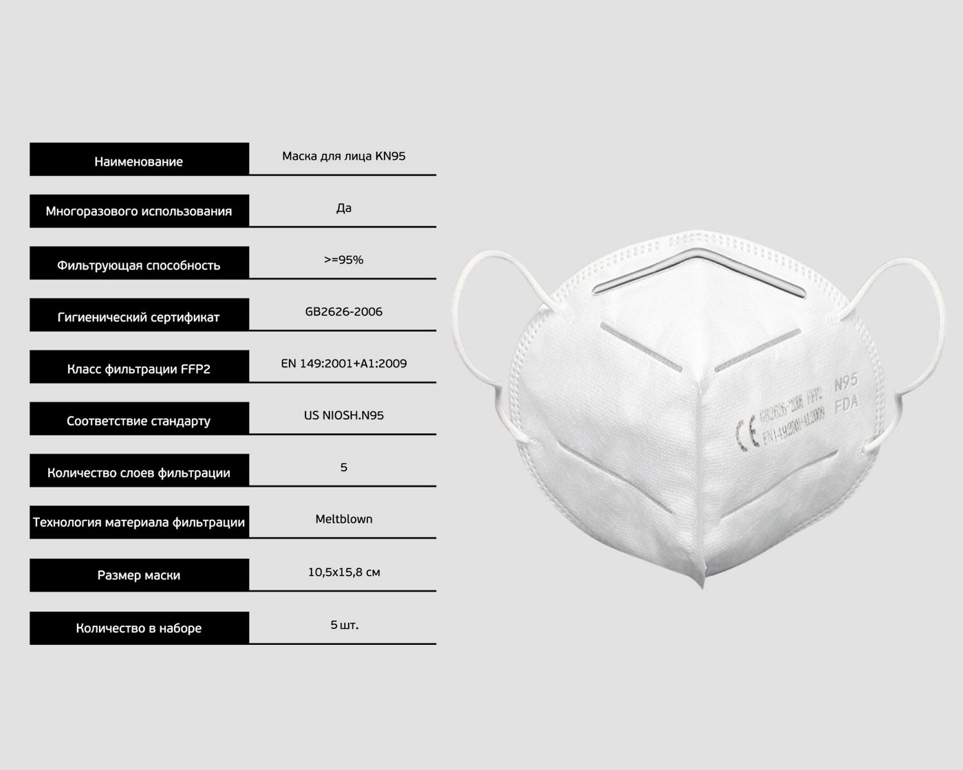 Респиратор универсальный KN95, FFP2, 10 шт.