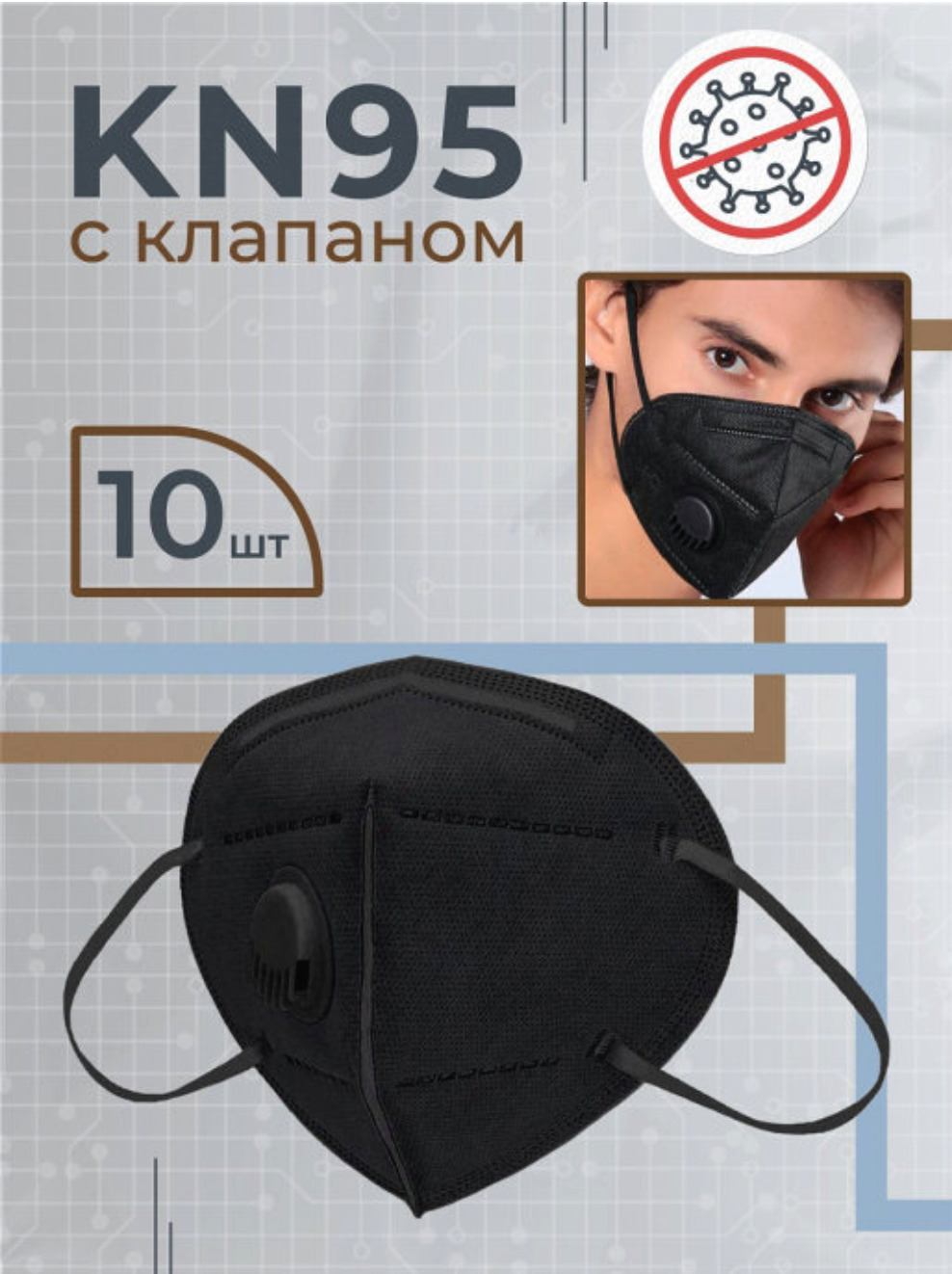 Респиратор универсальный KN95 с клапаном чёрный, FFP2, размер Универсальный, 100 шт.