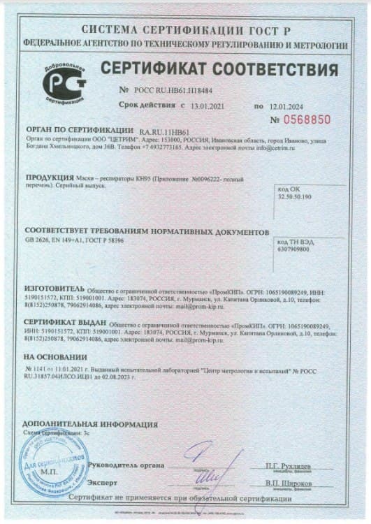 Респиратор универсальный KN95, FFP2, размер Универсальный, 6 шт.