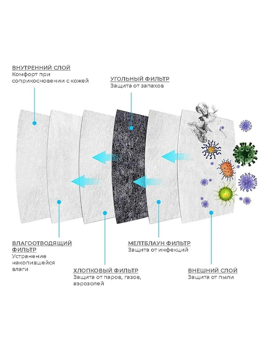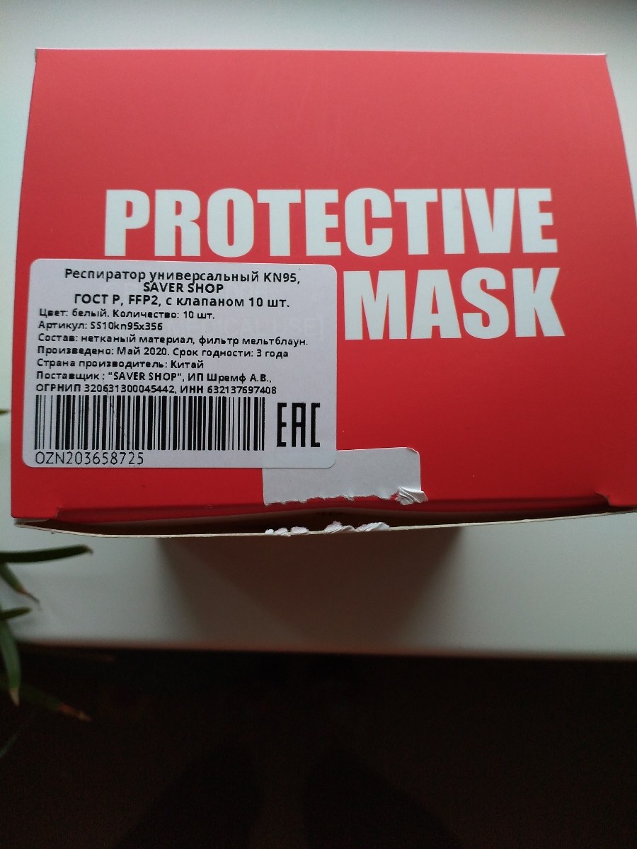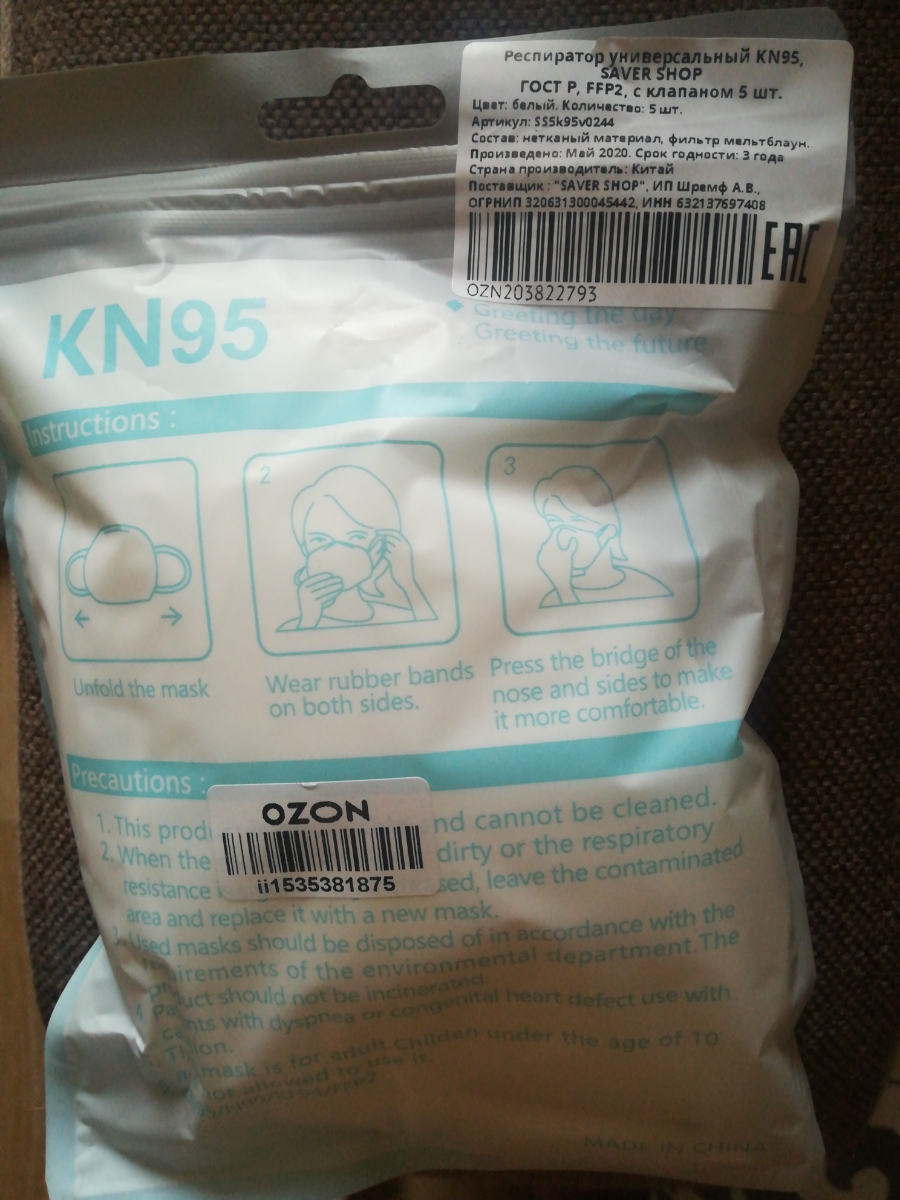 Респиратор универсальный KN95, FFP2, 5 шт.