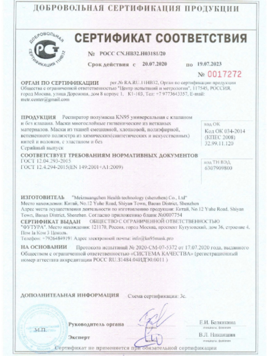 Респиратор универсальный KN95, FFP2, 10 шт.