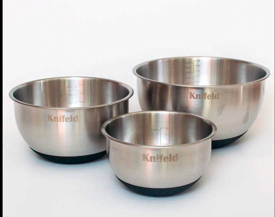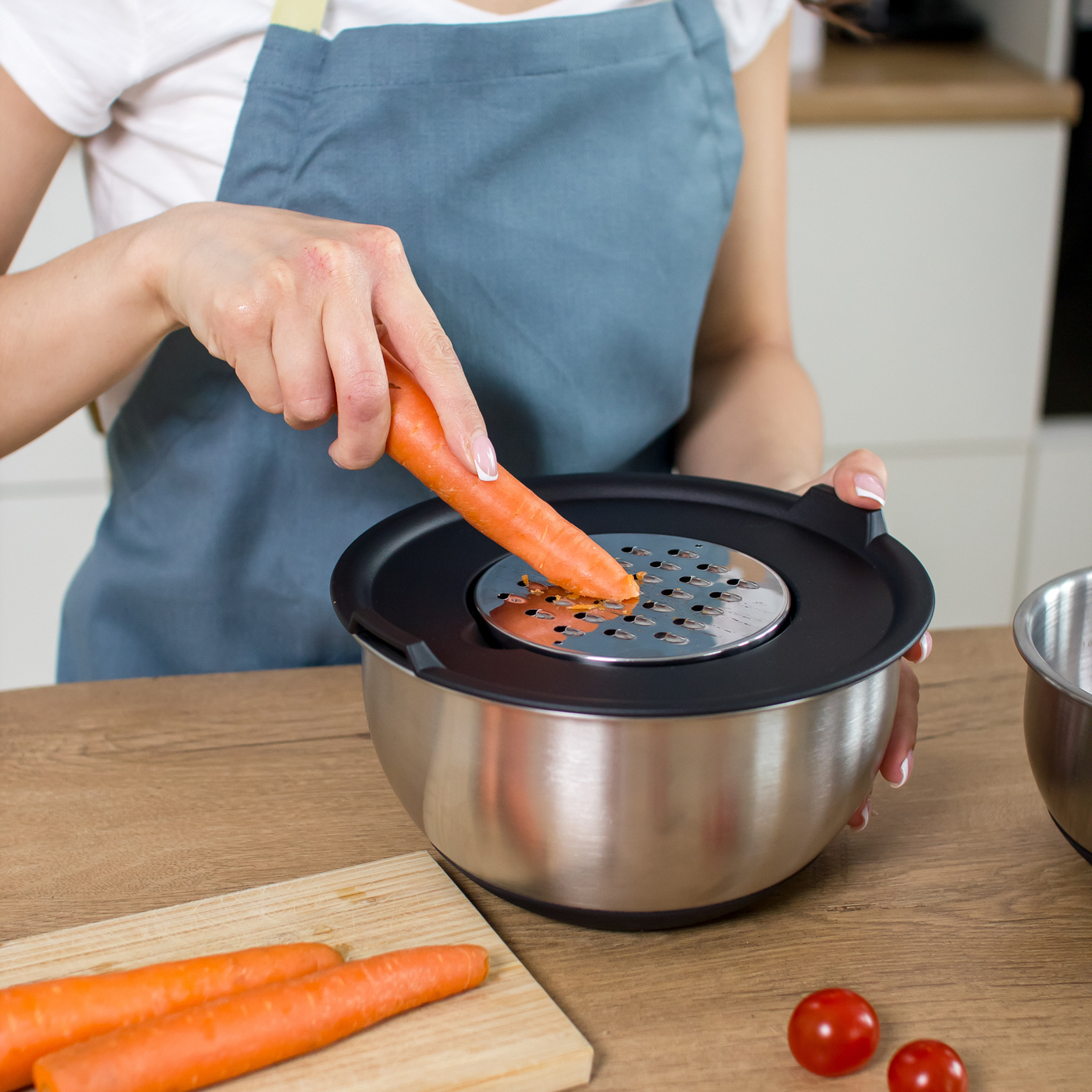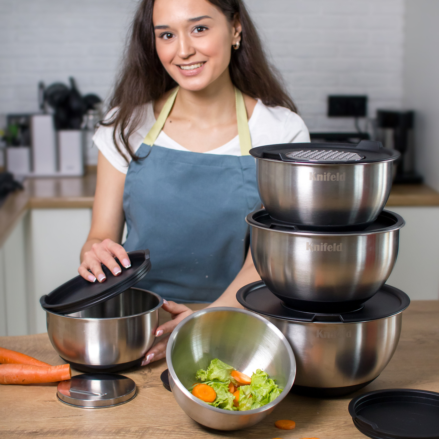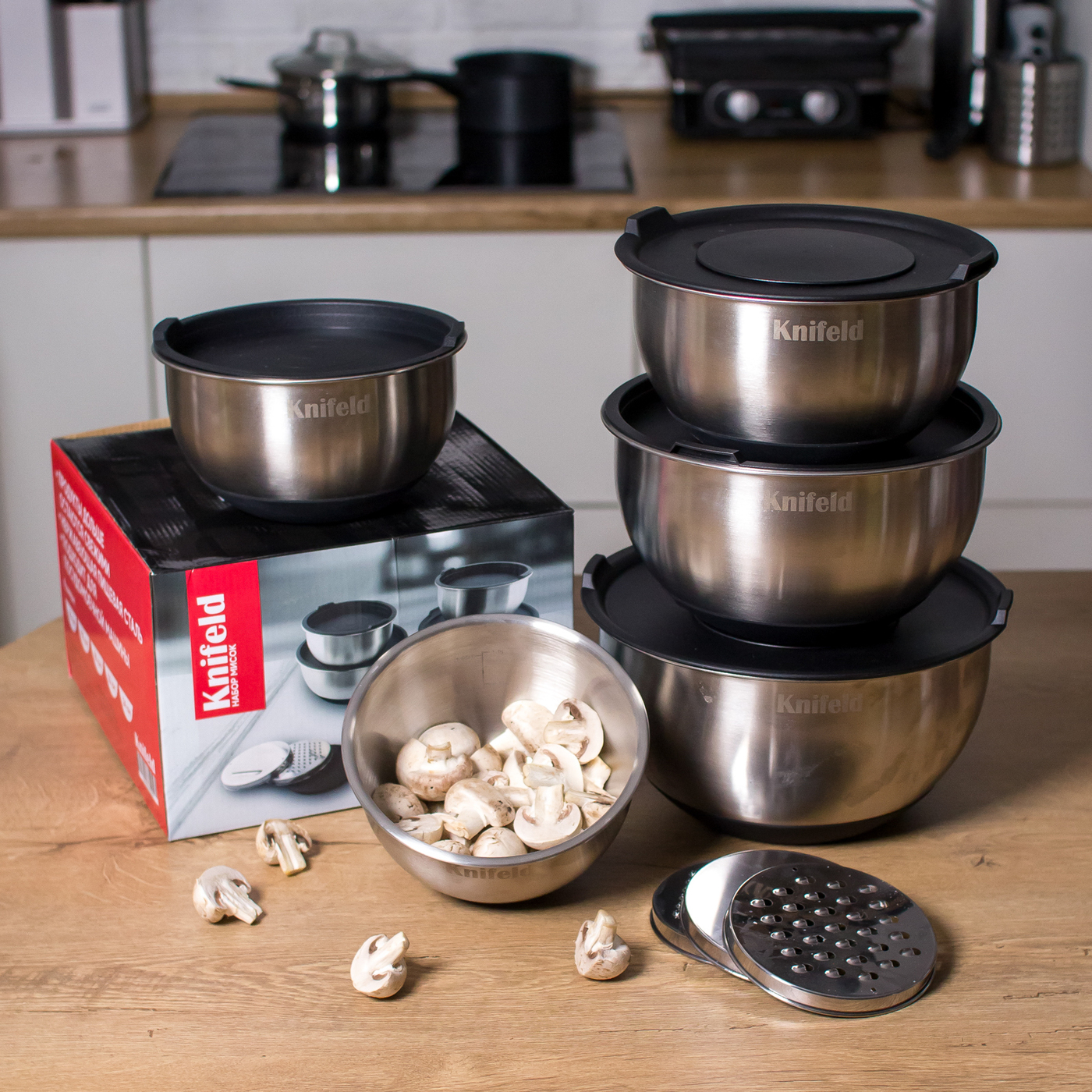Набор металлических мисок с силиконовым основанием, крышкой и терками в комплекте - 5шт. Подарок!