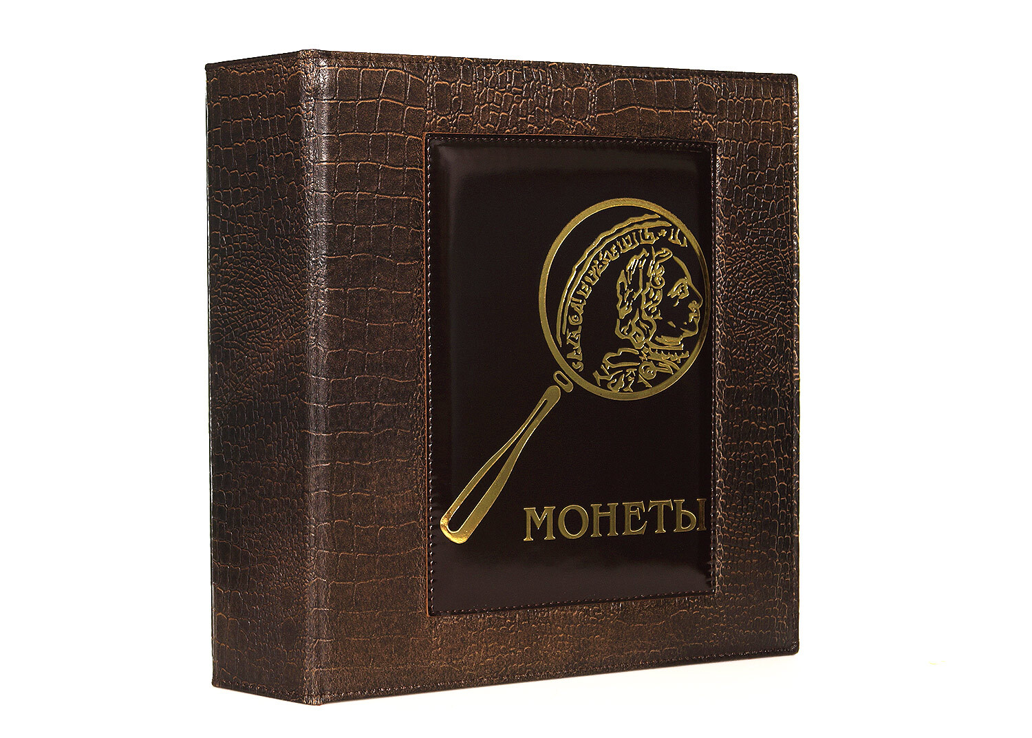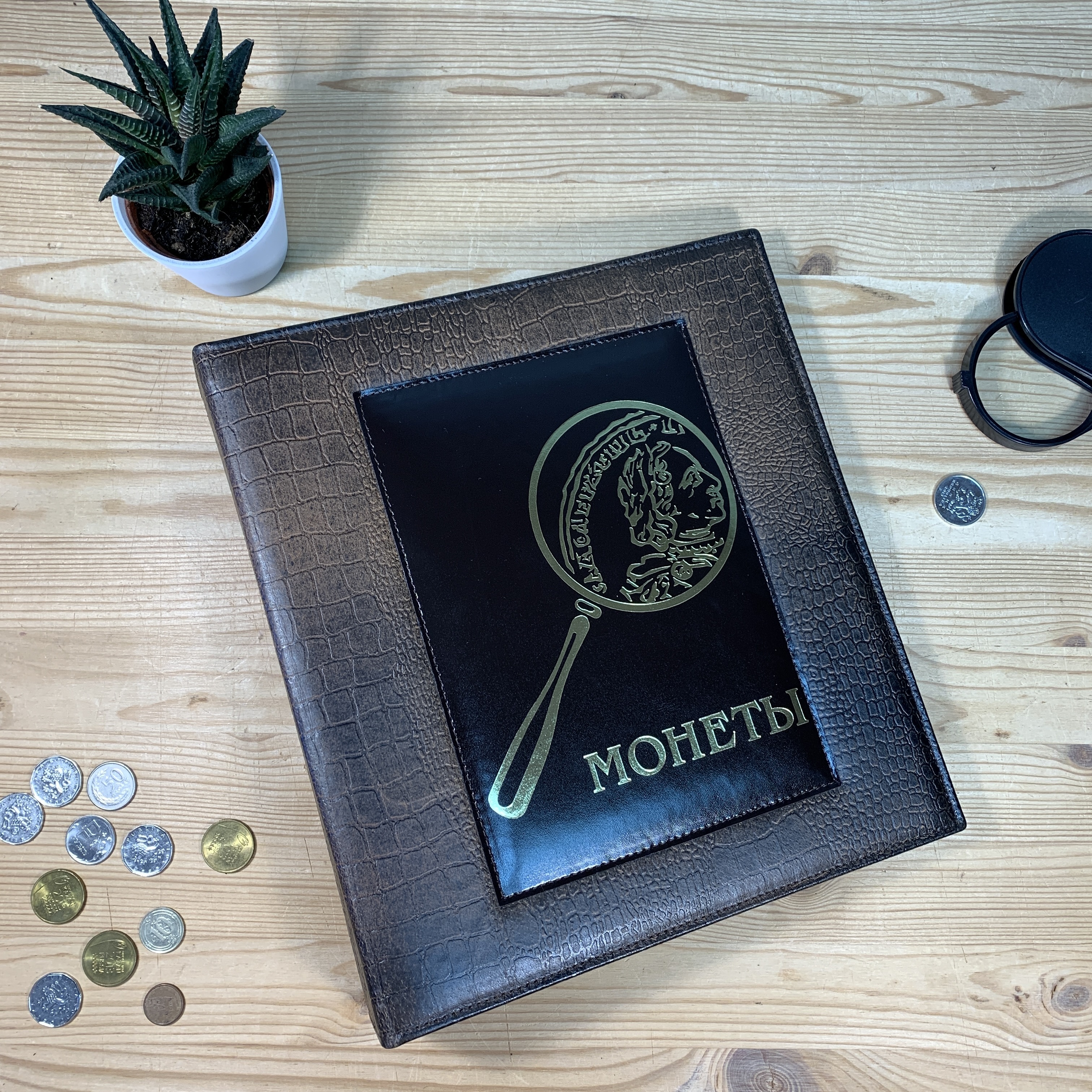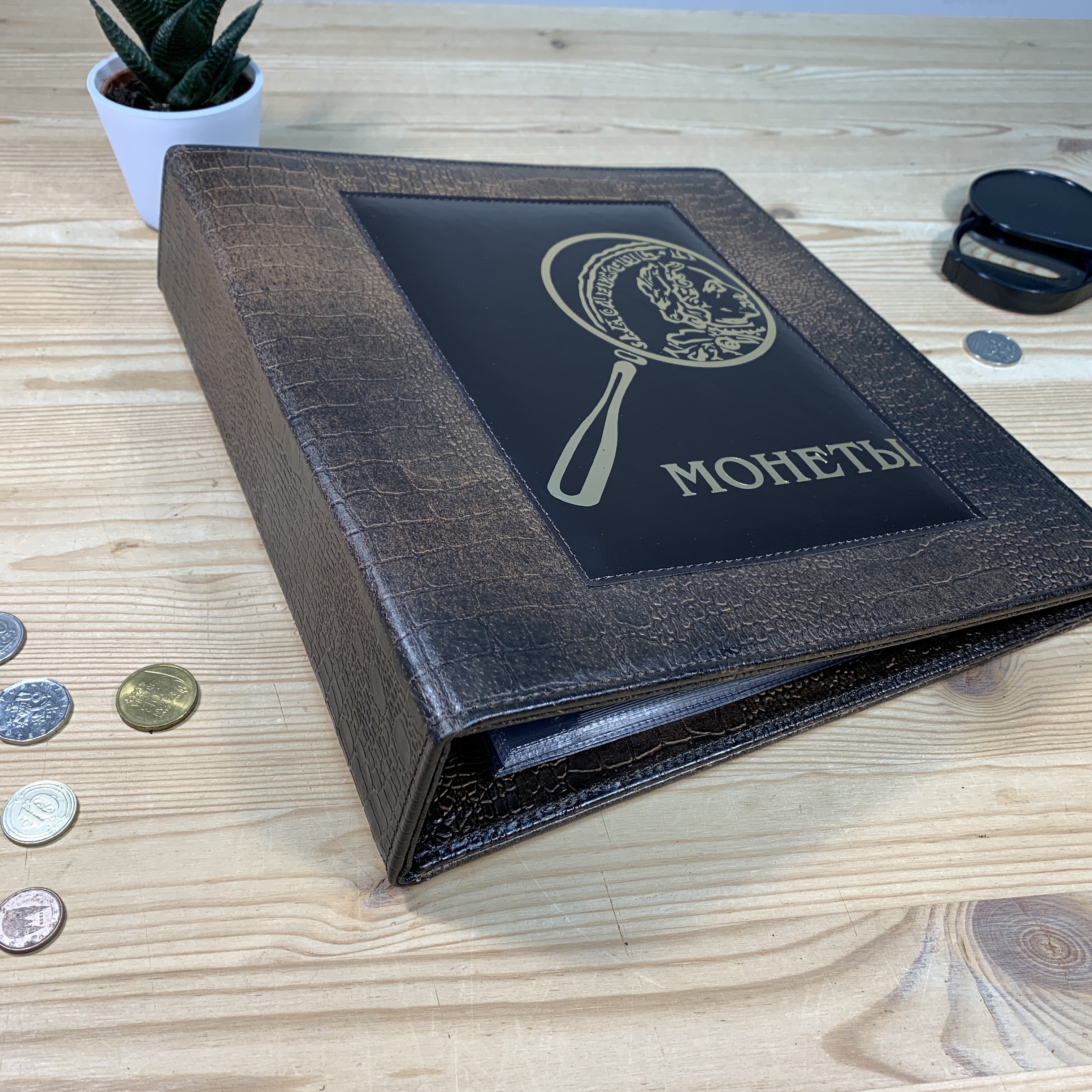 Альбом для монет "Золото" из тиснёной кожи с 12 файлами с клапанами