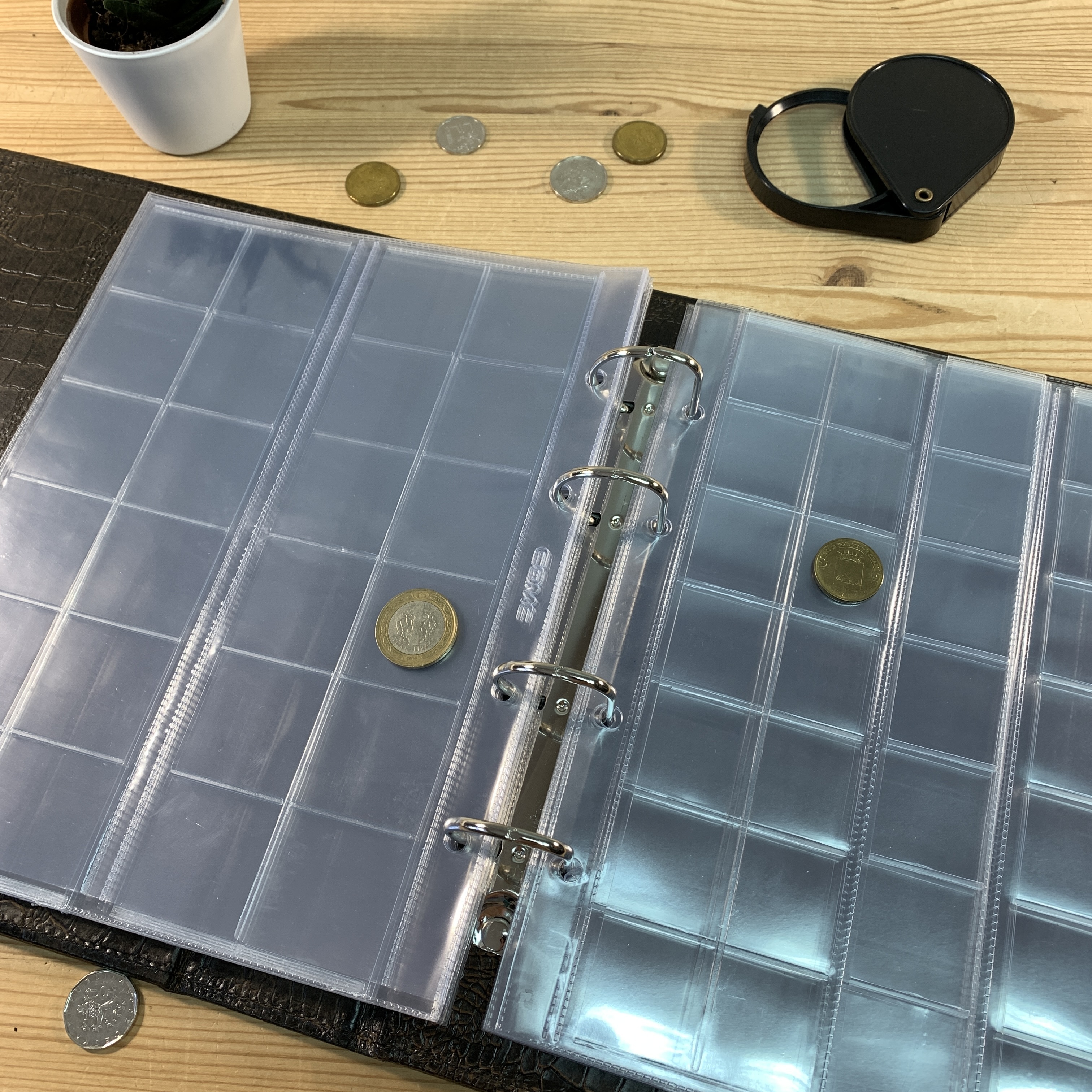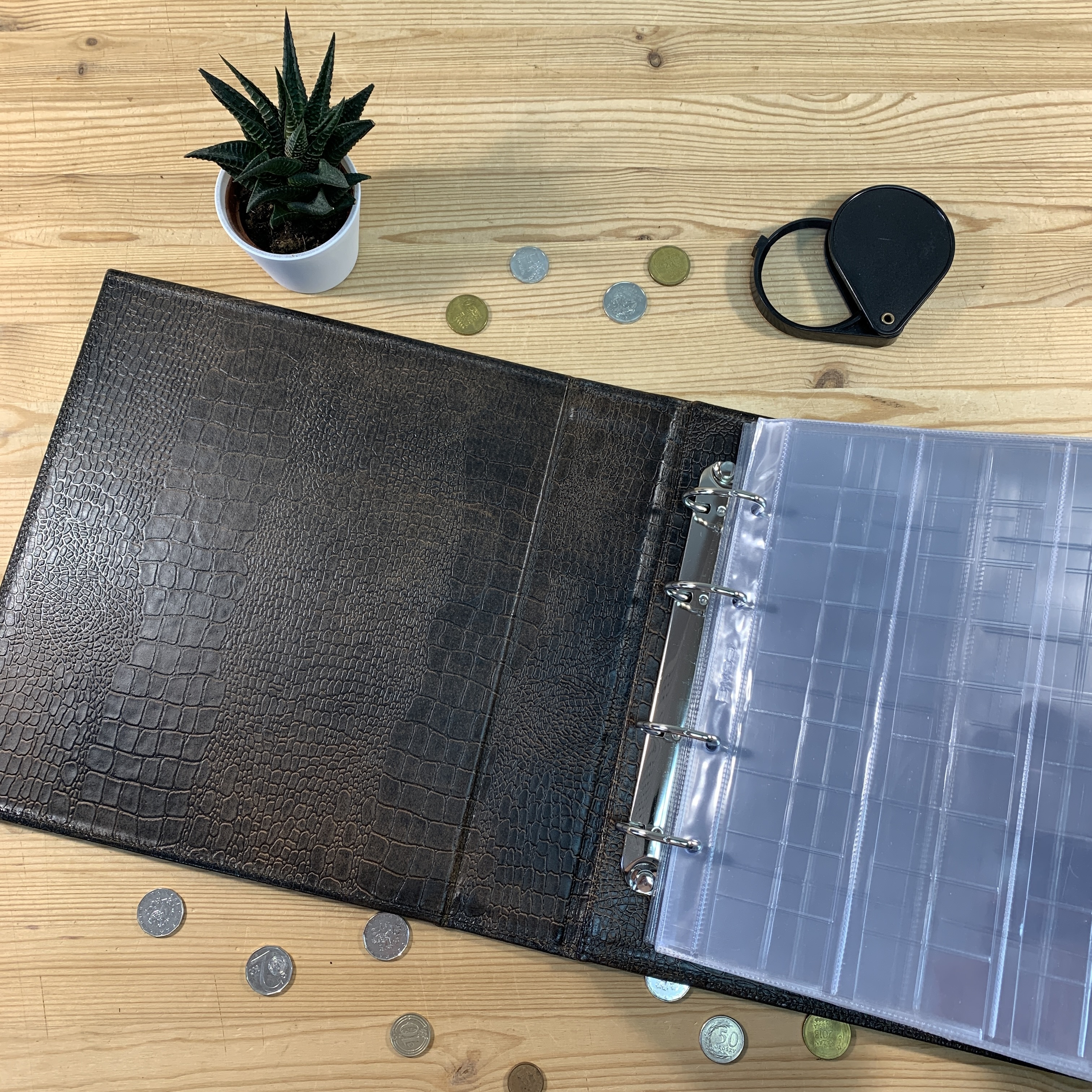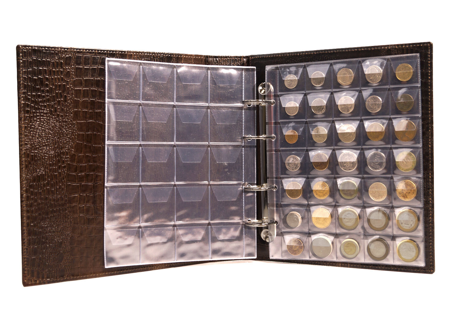 Альбом для монет "Золото" из тиснёной кожи с 12 файлами с клапанами