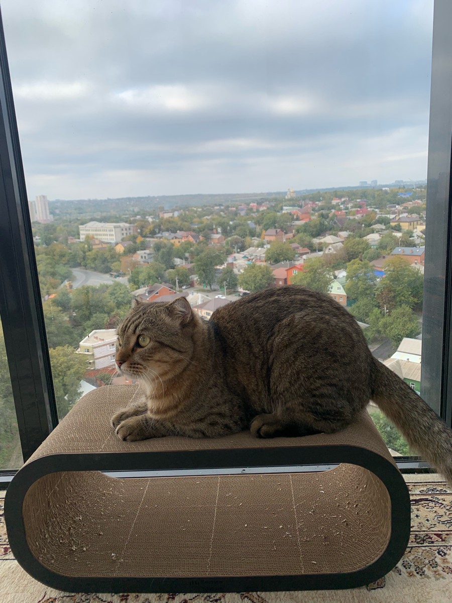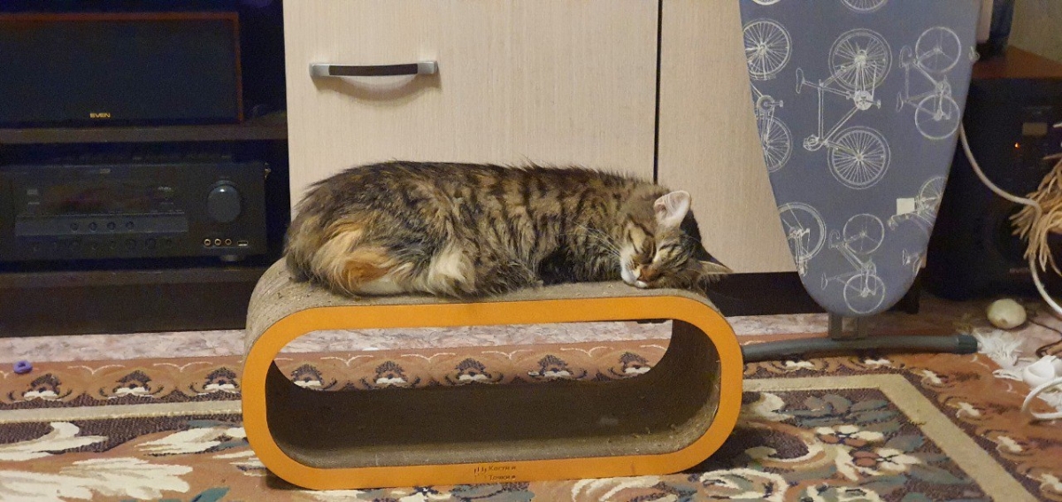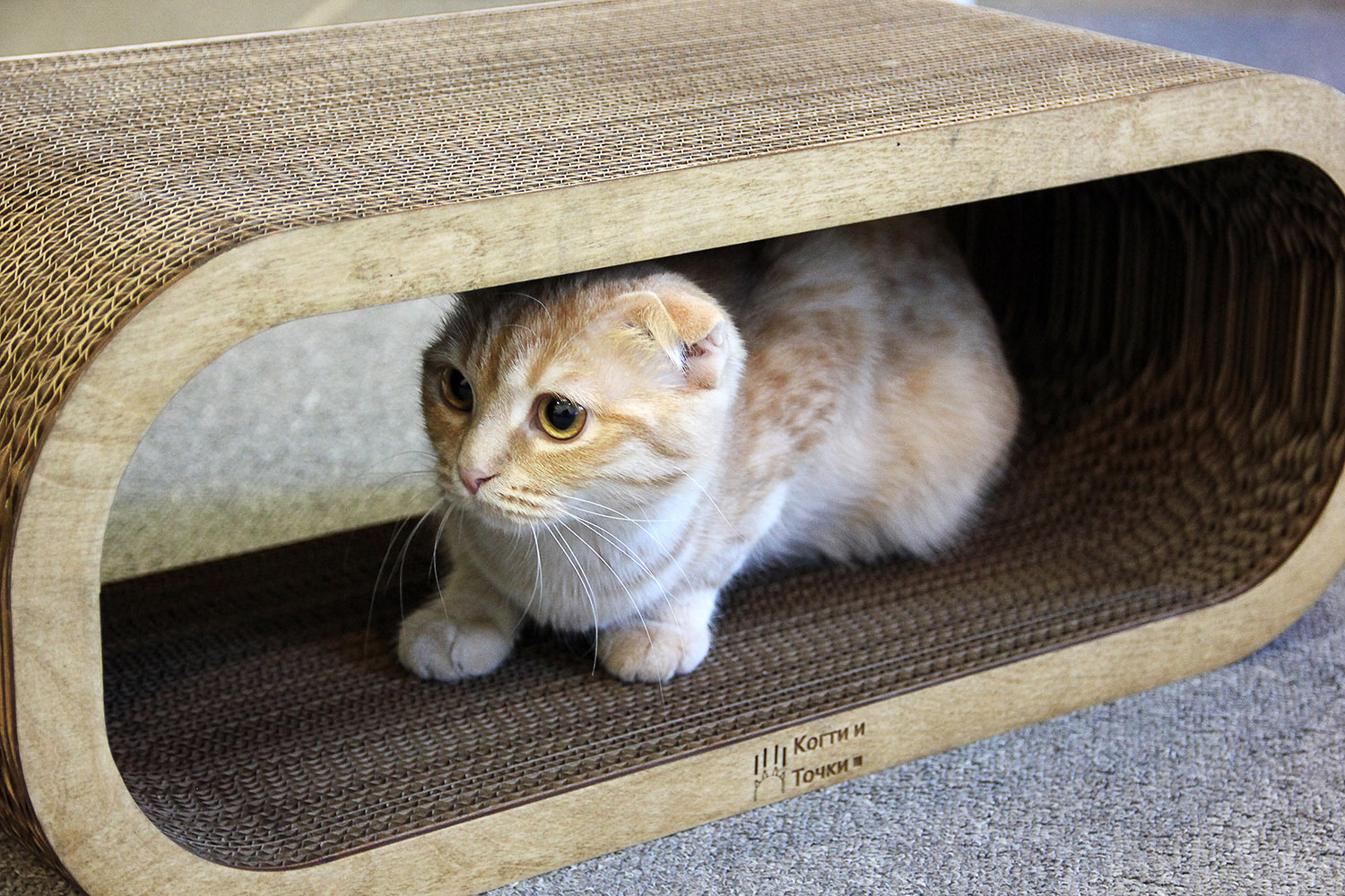 Картонная когтеточка/ Когтеточка для кошек с домиком/ Лежак