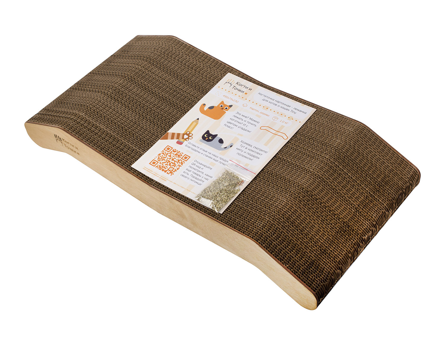 Стильная Когтеточка/ Когтедралка - лежанка из картона для кошек, с мятой, 50x8х23 см, Махагон