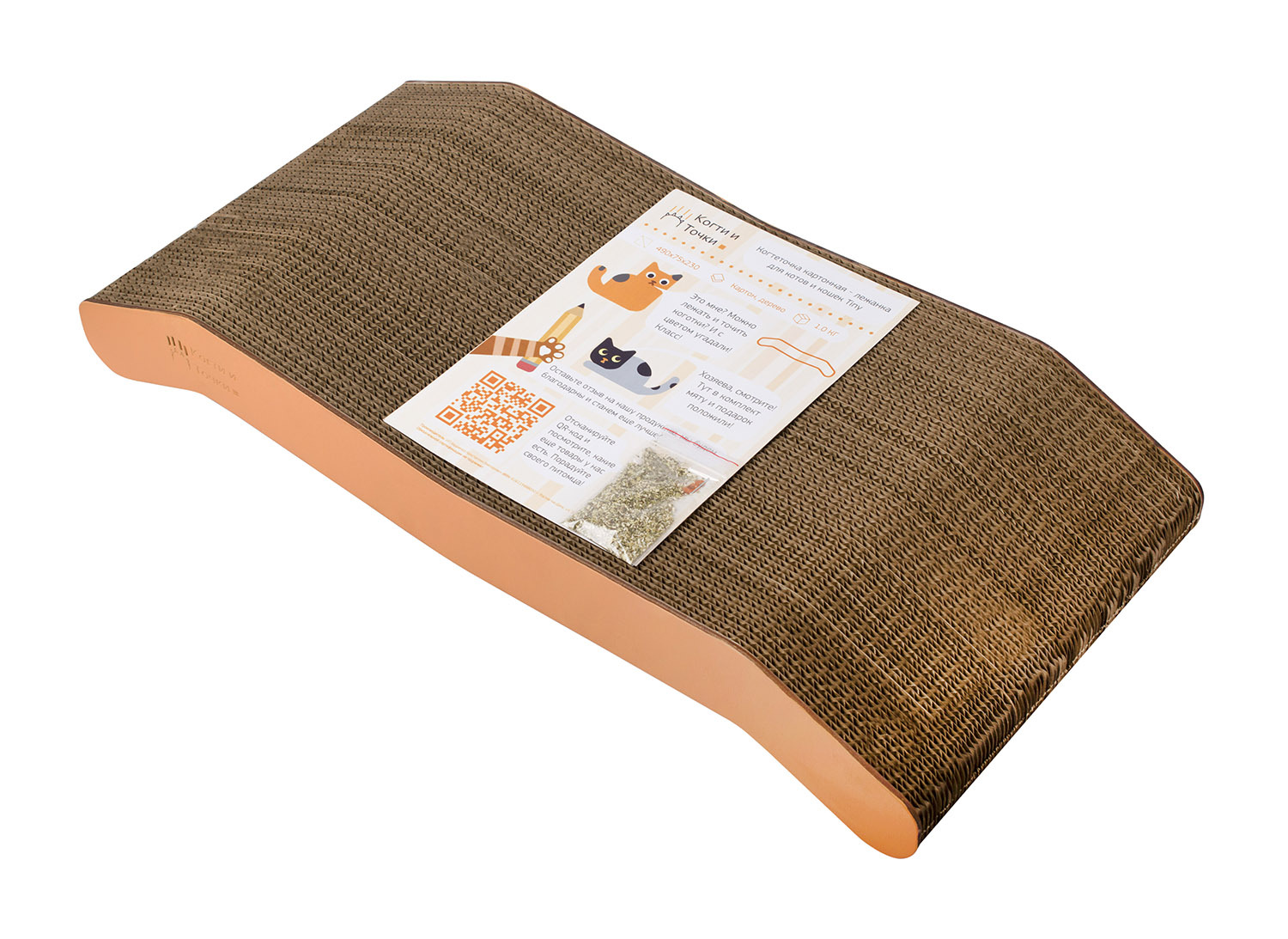 Стильная Когтеточка/ Когтедралка - лежанка из картона для кошек, с мятой, 50x8х23 см, Оранж