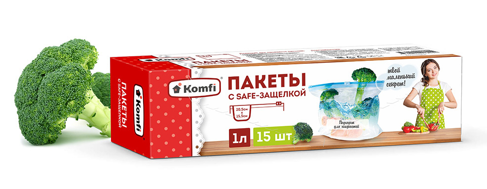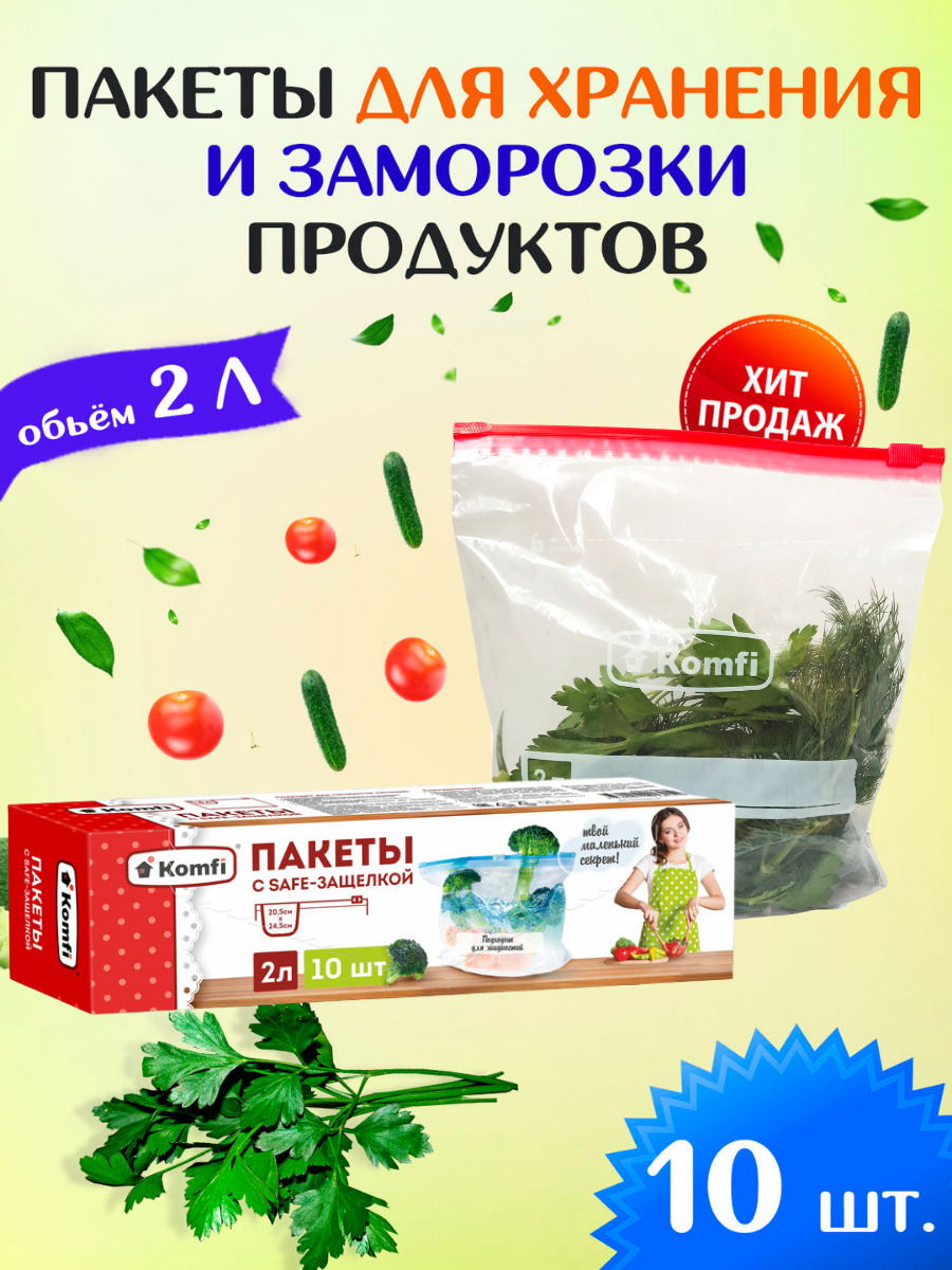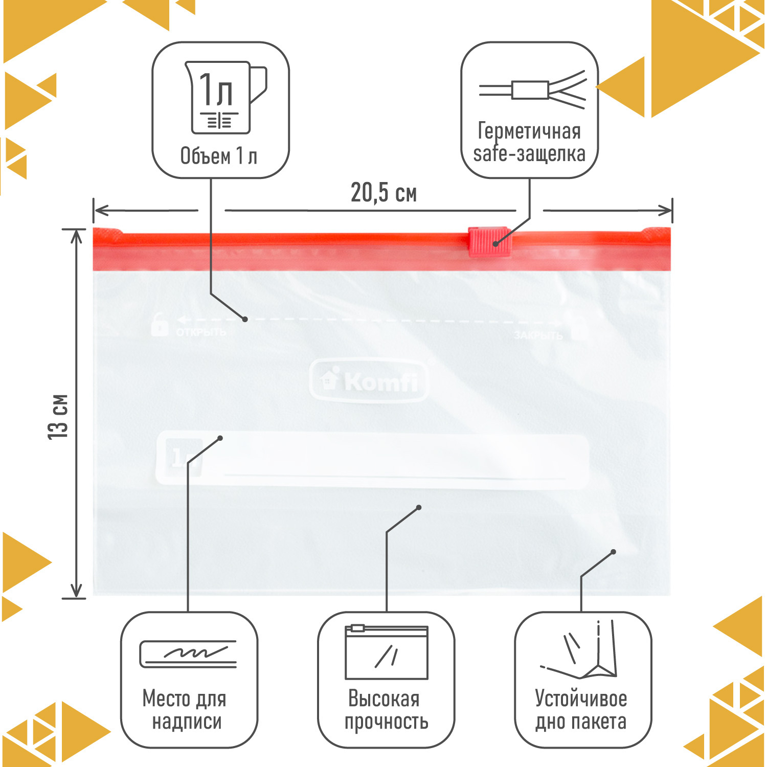 Зип пакет, Пакет для хранения продуктов Komfi, 20,5x24,5 см, 10 шт