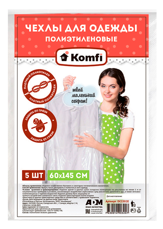 Чехол для одежды Komfi, 145 см х 60 см, 5 шт