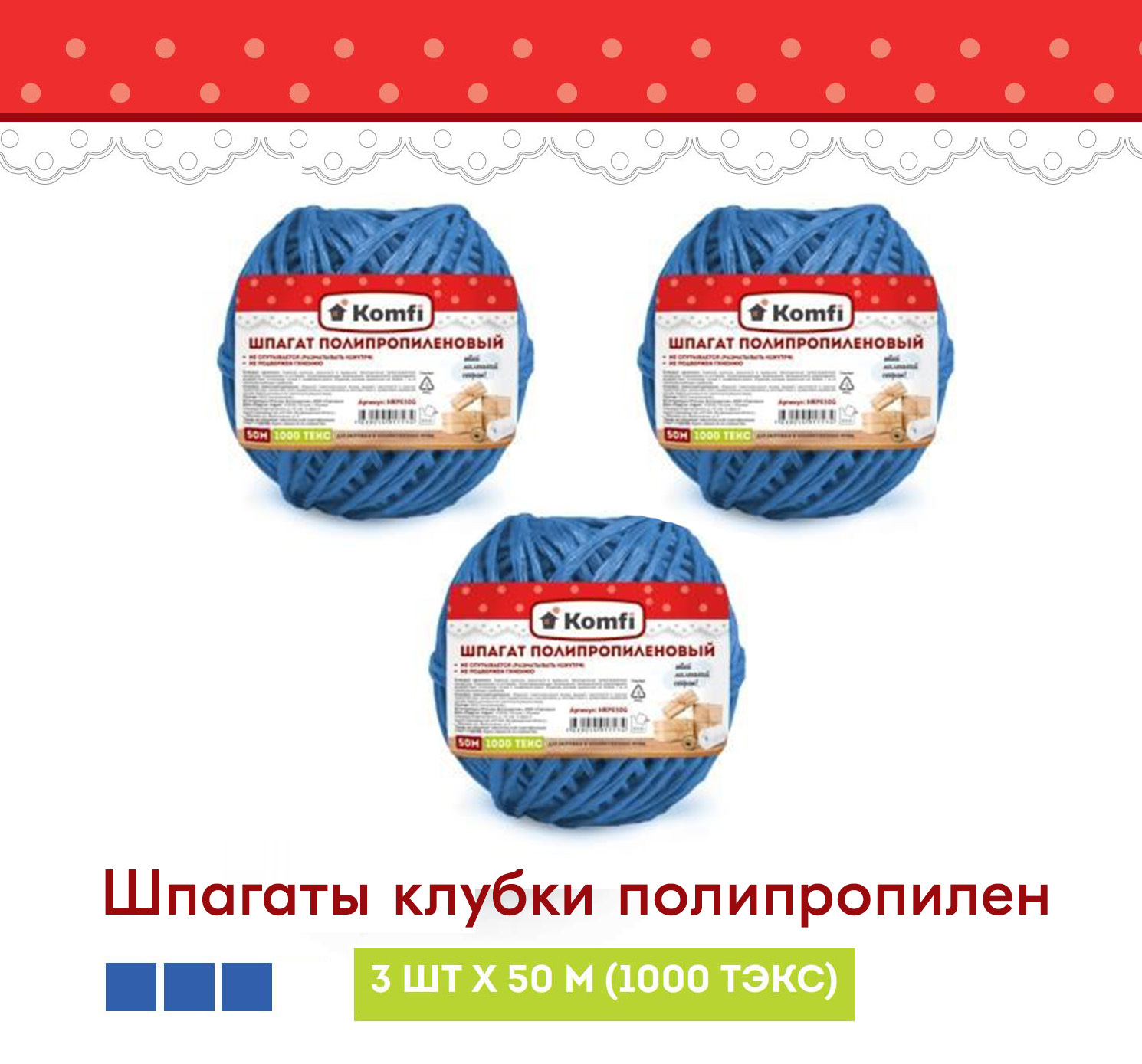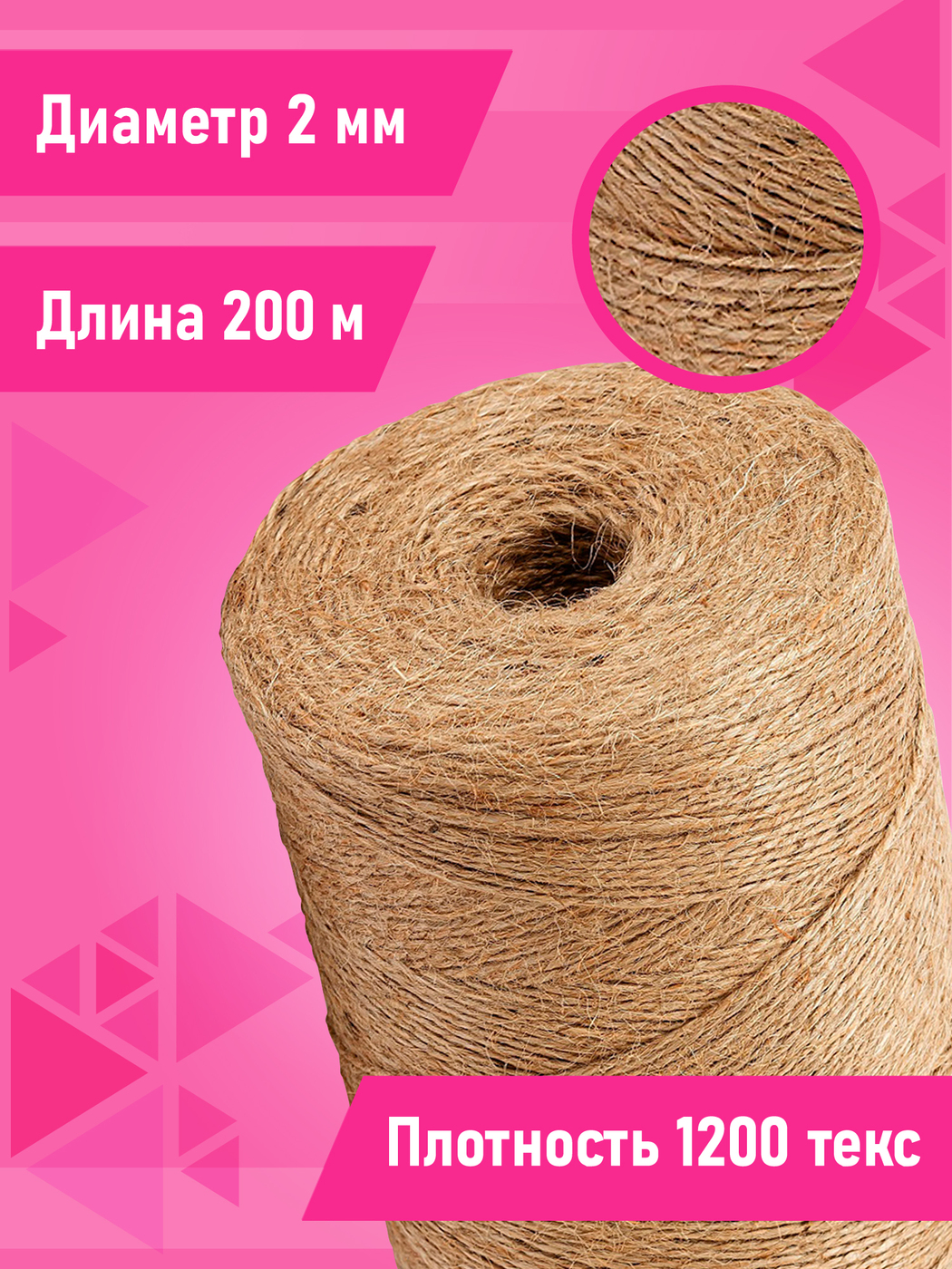 Шпагат джутовый Komfi, шпагат для рукоделия, шнур крепежный (50 м, 560 текс, бурый)