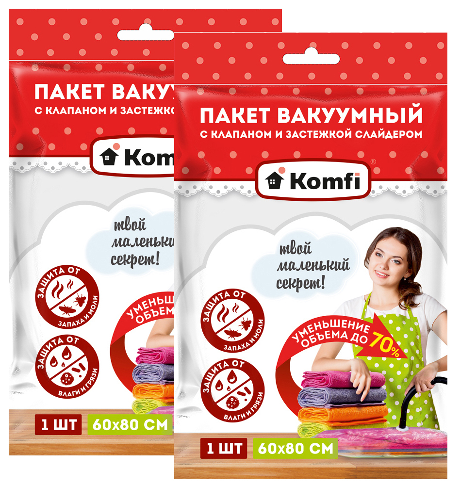Пакет вакуумный Komfi (2шт) с клапаном и застежкой слайдером (60х80см) для хранения вещей