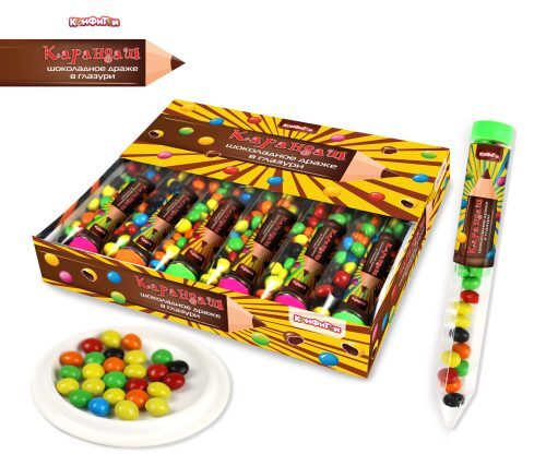 КАРАНДАШ шоколадное драже в глазури, блок 24 шт. (6г х 24 х 24)