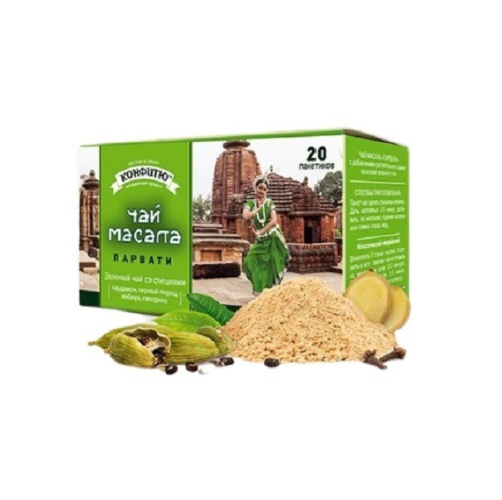 Чай Масала ПАРВАТИ зелёный с кардамоном, черным перцем, имбирем и гвоздикой, 20 пак