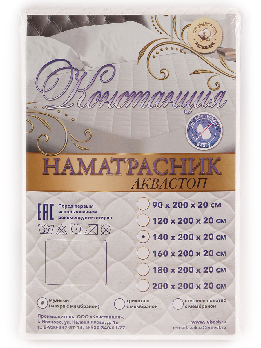 Наматрасник-чехол Констанция Наматрасник "АКВАСТОП" с бортом 180x200х30см белый
