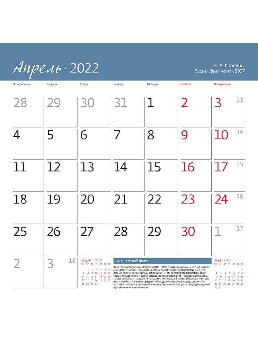 Календарь-органайзер Времена года в русской живописи 2022 год