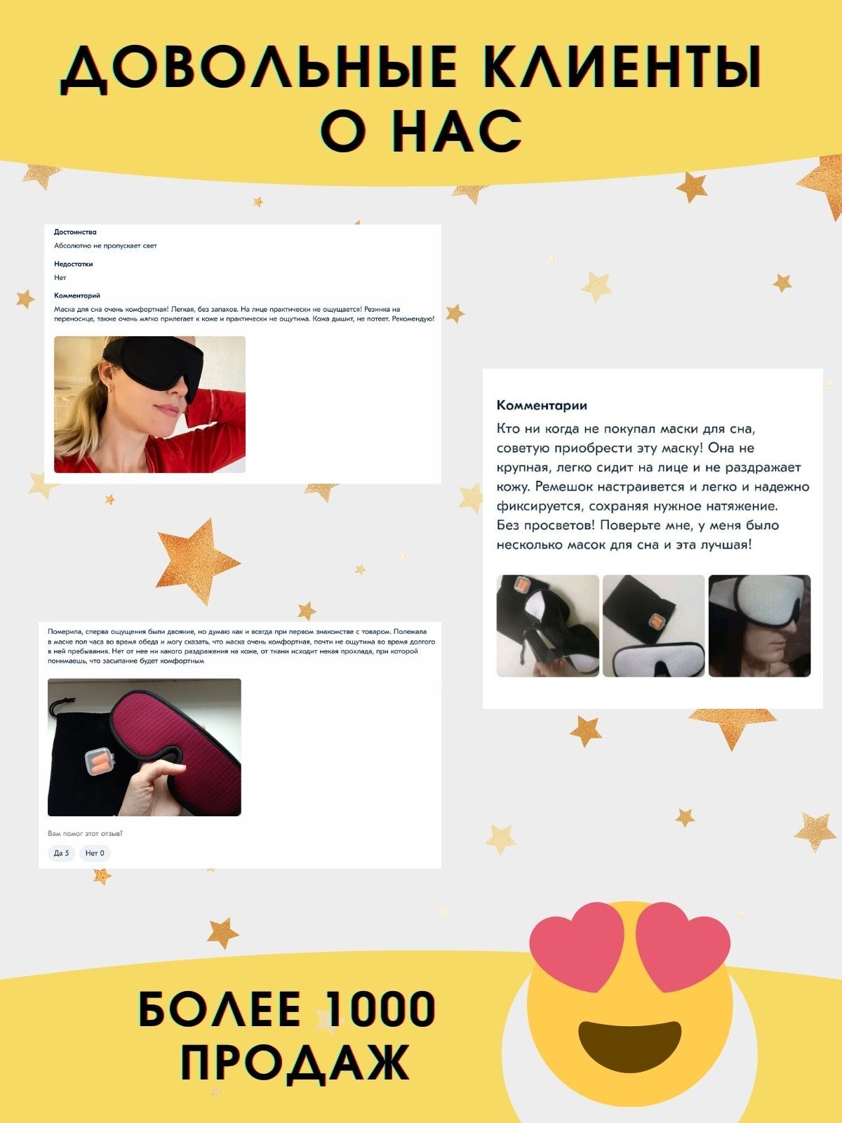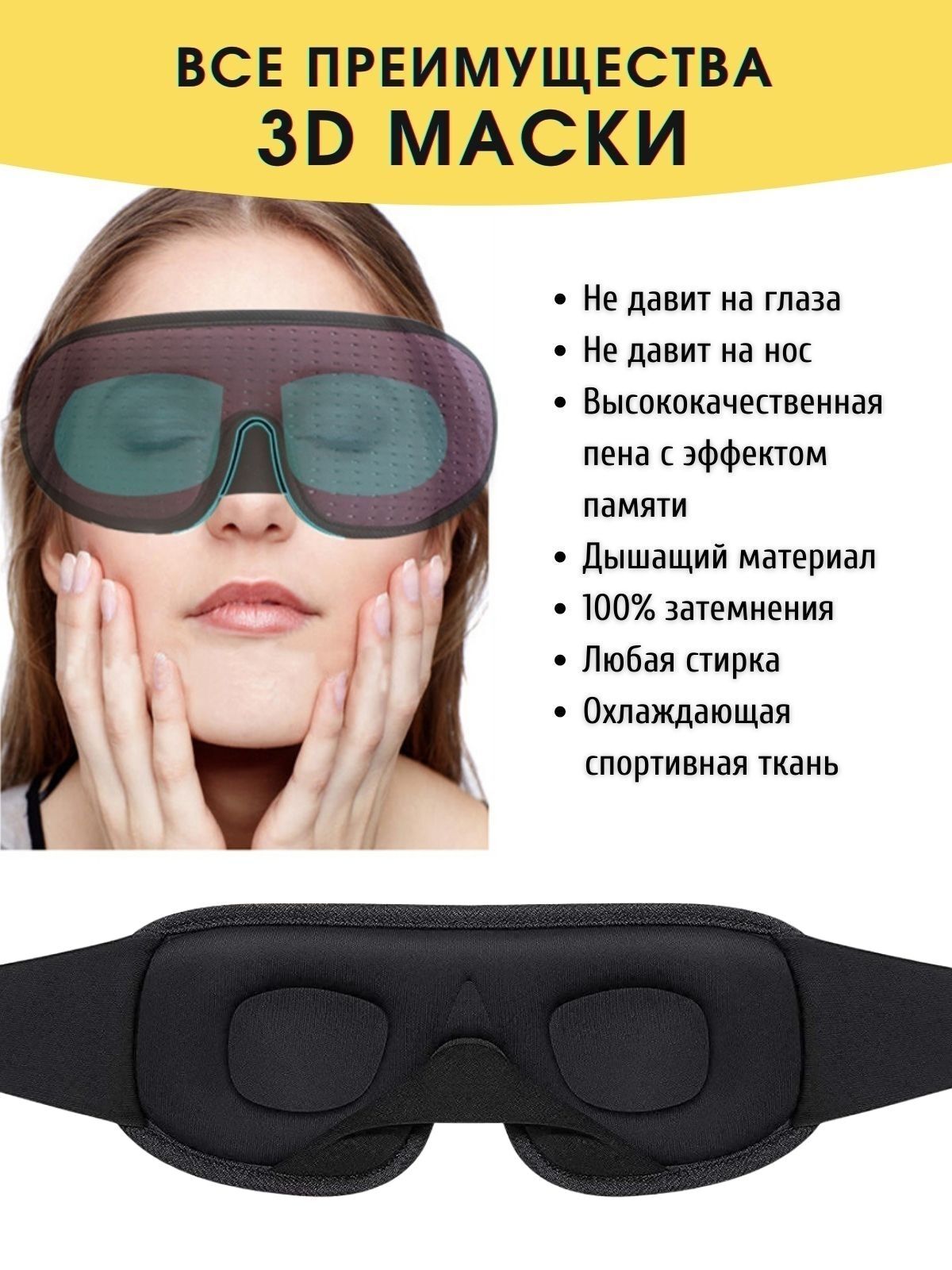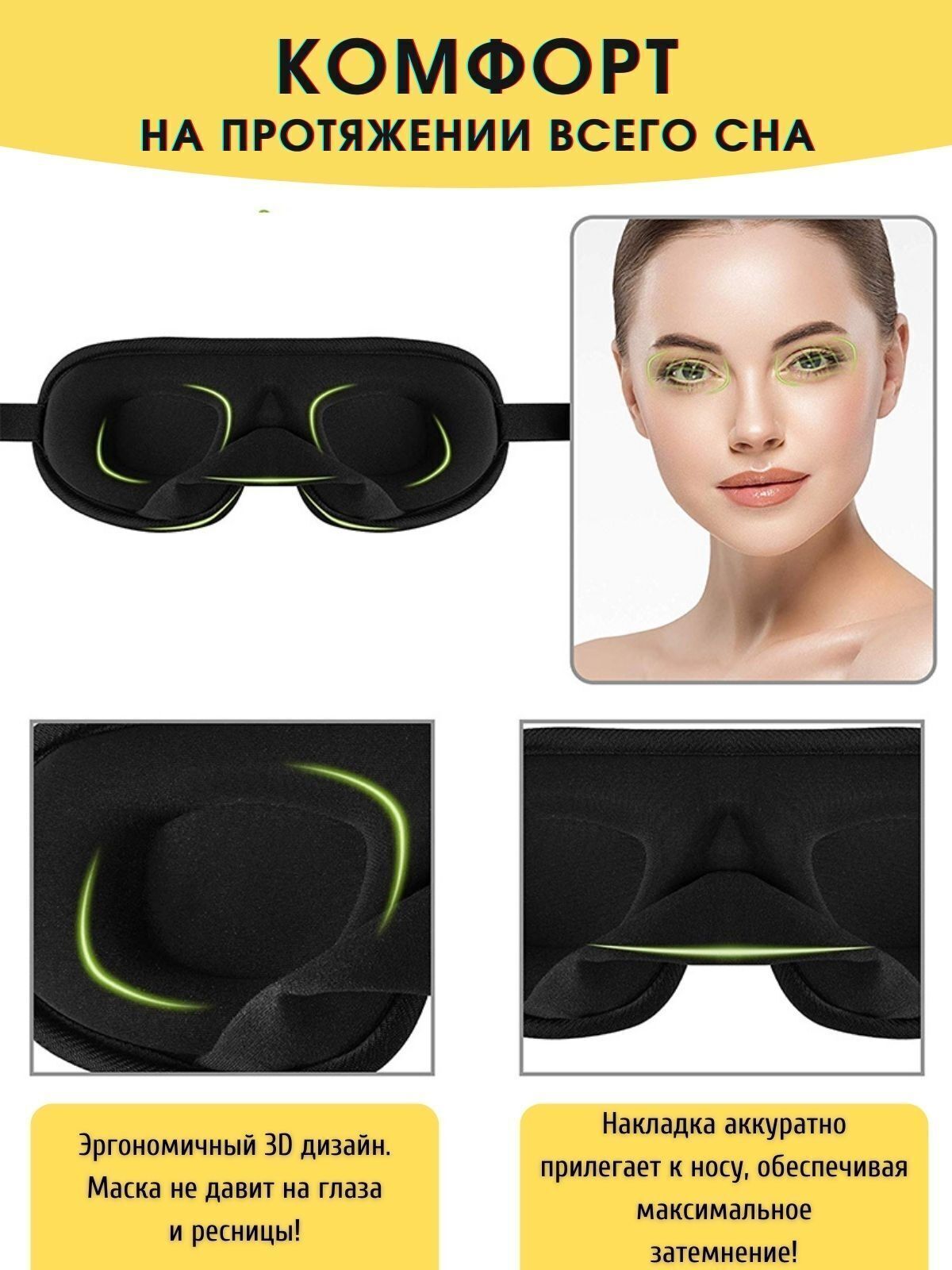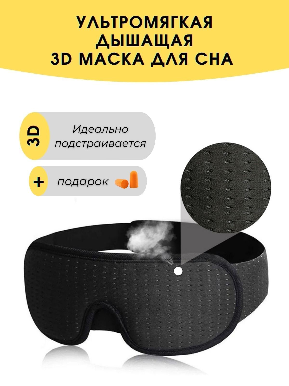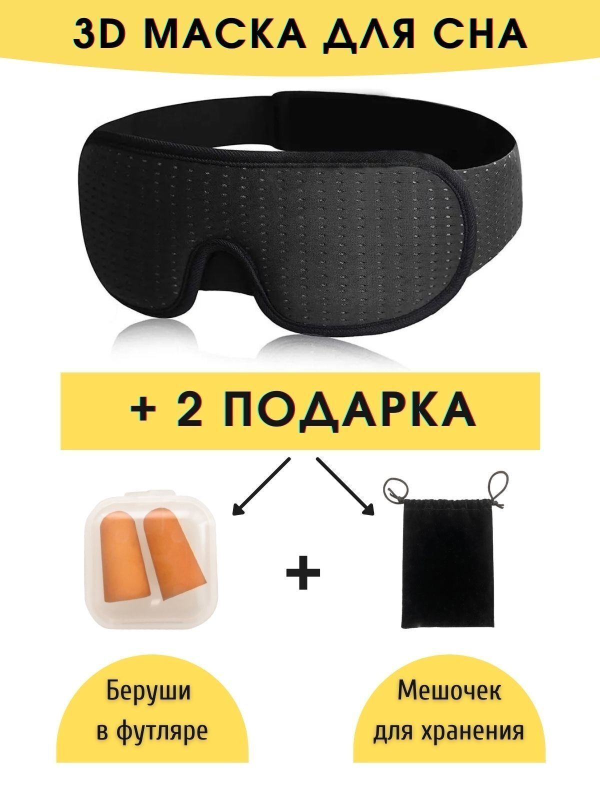 Маска для сна KORFI беруши в подарок. Повязка на глаза женская/мужская. Очки для сна хлопок