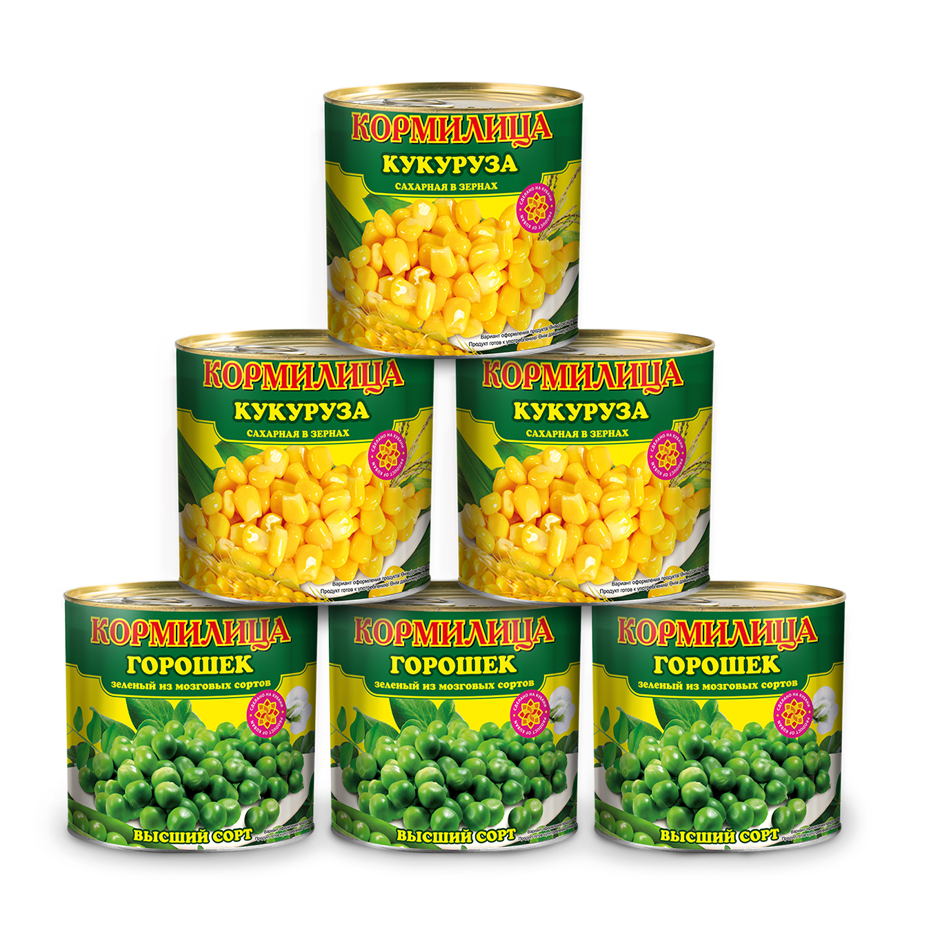Зеленый горошек Кормилица высший сорт и Кукуруза в вакууме 6 банок по 425мл