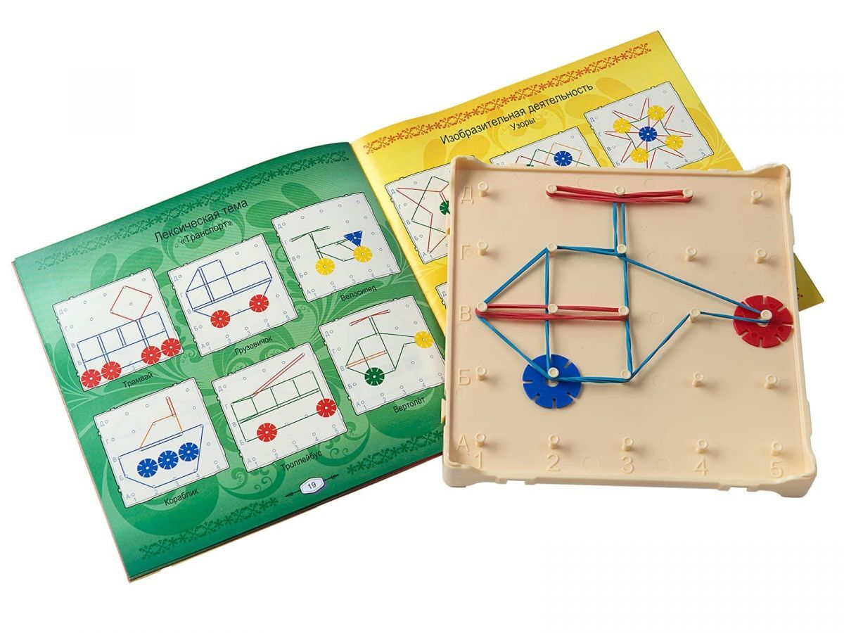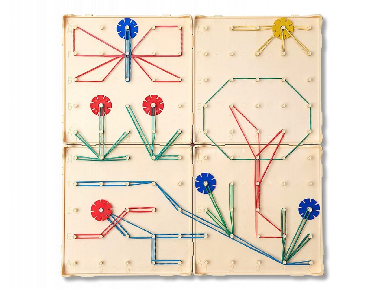 Математический планшет с резиночками Корвет 2 в 1 (геоборд, геометрик), 114 схем