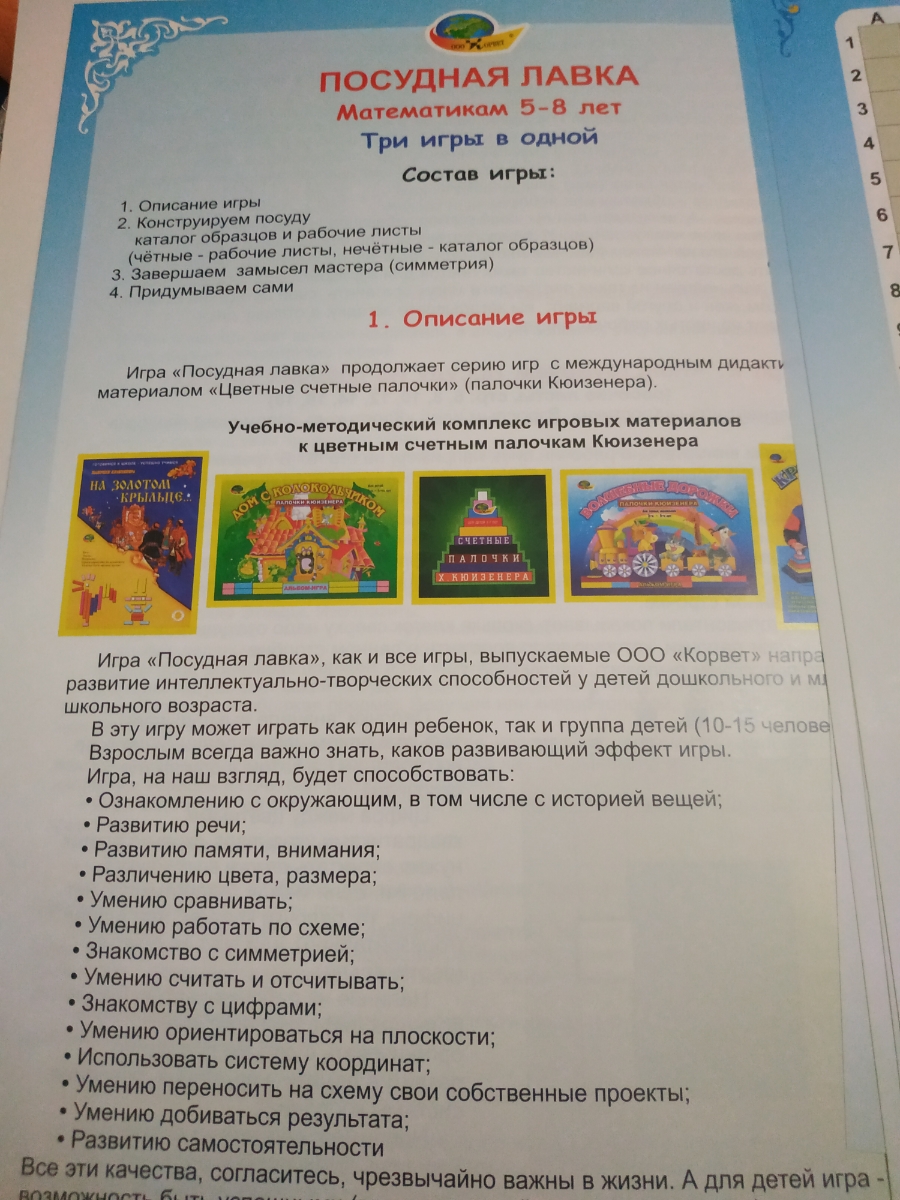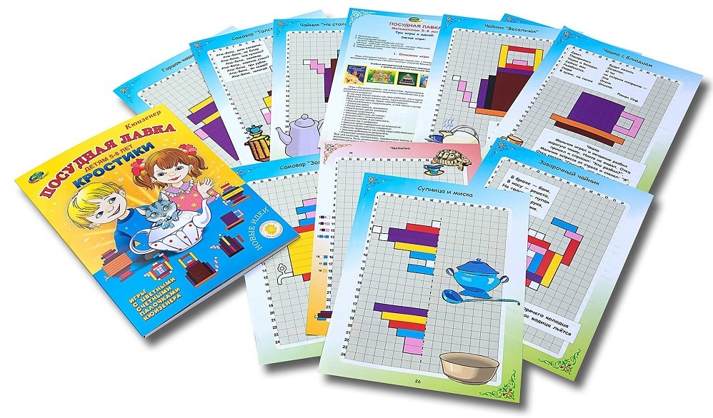 Развивающая игра, пособие к палочкам Кюизенера "Кростики. Посудная лавка"