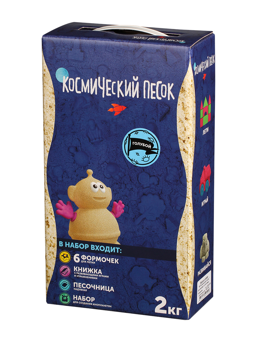 Космический песок Песочница + Формочки Голубой 2 кг (коробка)