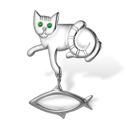 Костромской Ювелирный Завод Кольцо Кошка из Серебра 925 пробы С эмалью