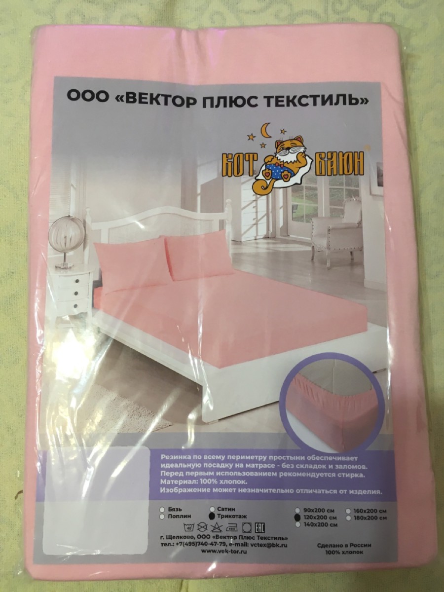 Простыня Кот Баюн на резинке Трикотаж, , розовый